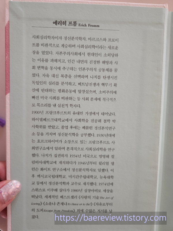 오잉? 에리히 프롬은 현재 살아있지 않은 걸로 알고 있는데, 왜 신간이 나왔을까 궁금했습니다. 에리히 프롬의 조교이자 정신과 전문의인 라이너 풍크 박사가 유작을 엮었다고 합니다.