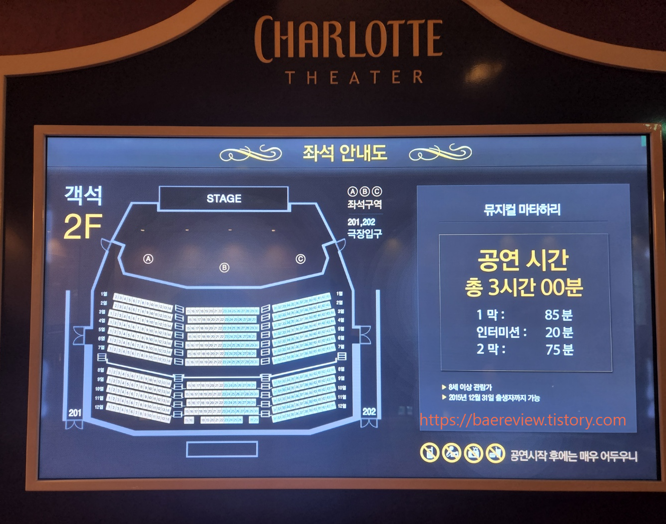 관람 시간 : 180분 (인터미션 : 20분) ; 1부 85분 + 인터미션 20분 + 2부 75분