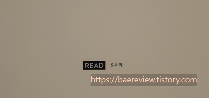 그가 전달하고자 하는 말들을, 크게 크게 잘 적어놓아져 있습니다. 어떤 의미를 전달하는지 확 와닿게 하는 느낌이 있습니다.