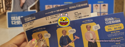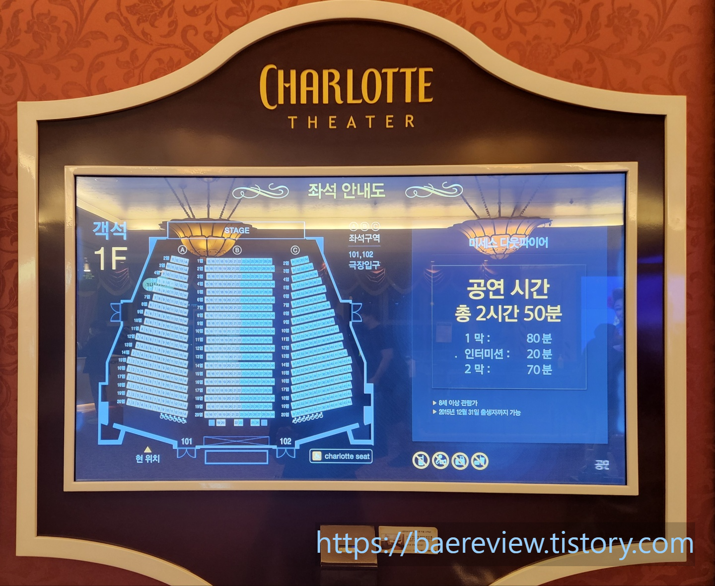 화요일 공연 시작은 7시반인데, 샤롯데씨어터 도착하니 6시 20분 정도 였습니다. 도착하자 마자 내돈 내산 샤롯데씨어터 VIP석 티켓 받았습니다. 프리뷰 티켓이라 30%로 할인해서 구매했습니다. 좌석은 1층 B구역이었습니다. 저는 앞사람,, 그 앞사람 분이 앉은키가 크셔서 그런지 머리에 가려서 공연 내내 요리조리 피해서 봤습니다. 요리조리 피해서 보다보니 그 좌석에 맞는 꿀 시야가 또 확보됩니다. 배우들이랑 눈맟춤하며 공연 감상했습니다.오히려 좋았습니다. 구웃!!!