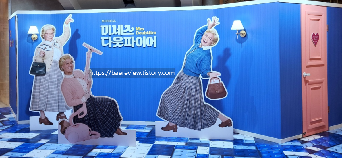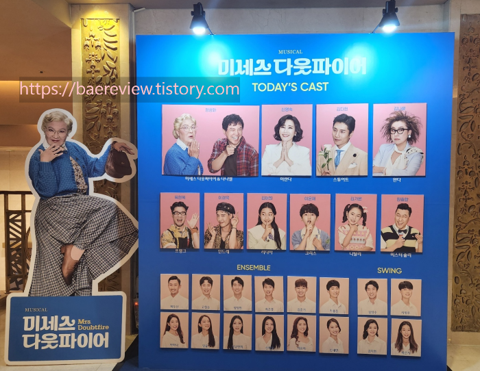 가족들이랑 즐겨본 미세스 다웃파이어를 뮤지컬로 볼 수 있었습니다. 미세스 다웃파이어 삼남매 리디아, 크리스, 나탈리와 같이 삼남매 출신인 제게 이 영화는 힐링의 영화이자, 감동의 영화였습니다. 이 영화 보고 참 많이 웃었던 기억이 있습니다.