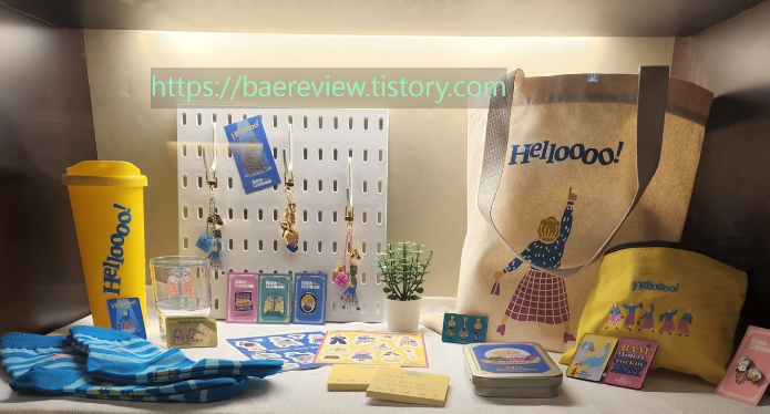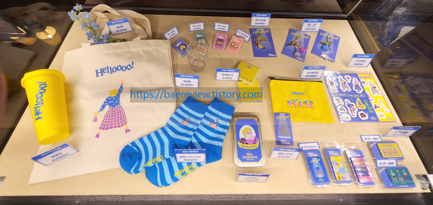 그리고 굿즈 매장도 구경했습니다. 미세스 다웃파이어 굿즈 물품으로, 에코백, 파우치, 스티커 눈길이 갑니다. 그리고 양말.. 취저 너무 귀엽습니다. 물품은 티켓 발권받는 곳 옆에서 구매하실 수 있고, 1층 입장하는 곳에서도 구매하실 수 있습니다.
