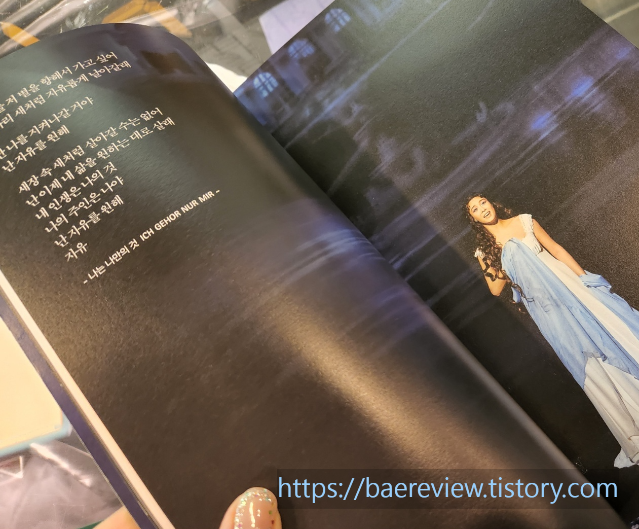 엘리자벳의 역을 맡은 뮤지컬 배우 옥주현님의 1막 마지막, 흰색 드레스 입고 펼쳐주신 공연은눈이 반짝반짝해질 만큼 너무 예뻤고, 감동이었습니다.