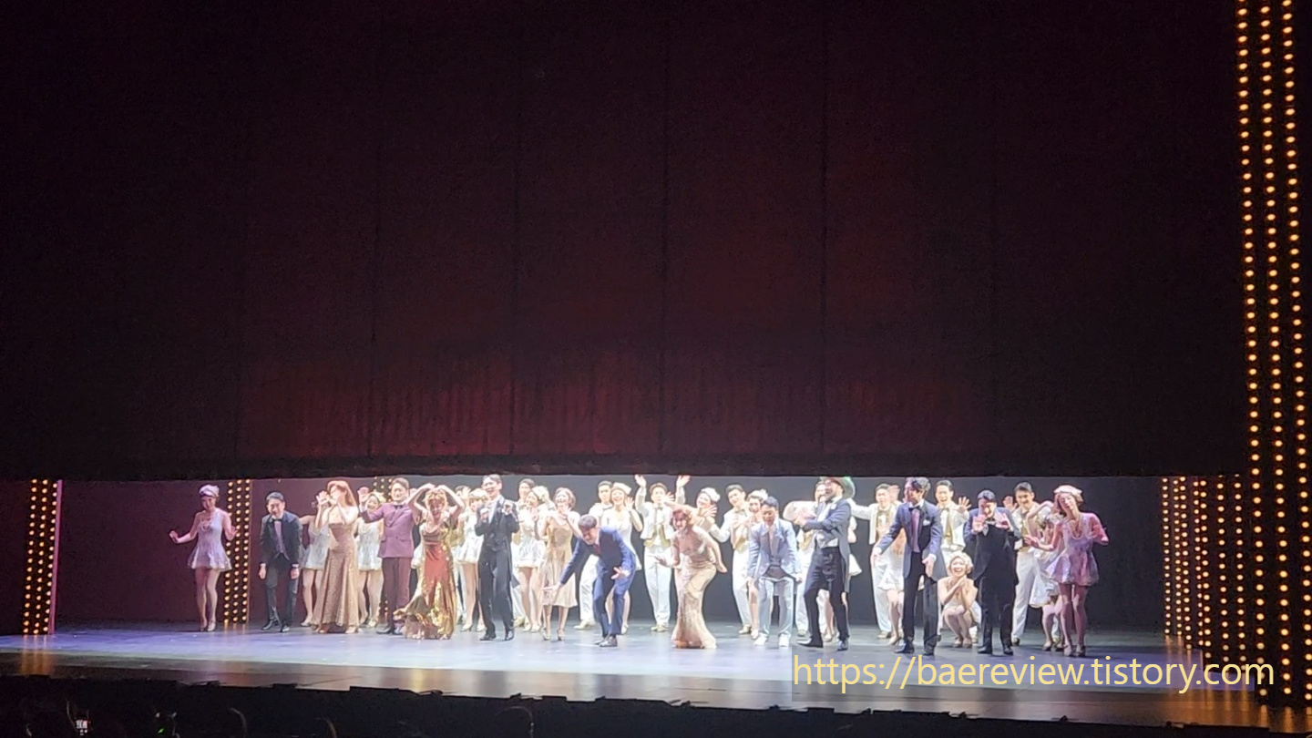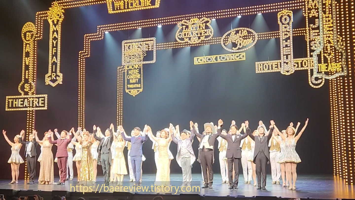 모든 배우분들이 훌륭했지만, 도로시 역의 배해선 배우님, 프리티 레이디의 작가 겸 작곡가 겸 제작자이자 페기 소이의 재능을 알아본 메기 존스의 역을 맡은 홍지민 배우님 과 펜실베니아 알렌타운 출신의 신인 코러스걸 페기 소여 역의 유낙원 배우님, 너무 멋있었습니다.