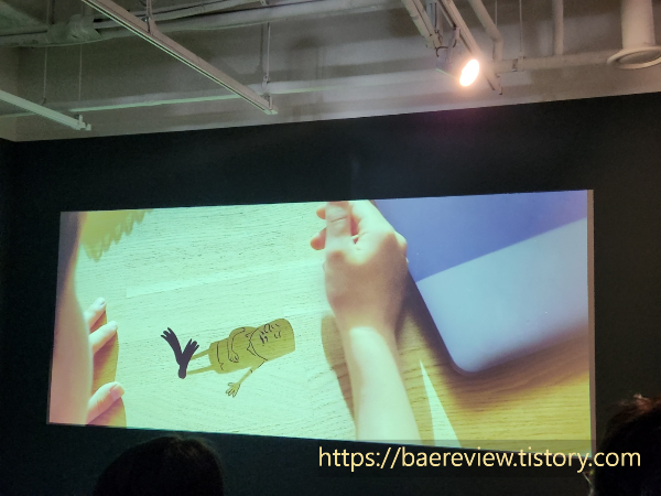 평일 오후에 방문했는데, 사람 너무 많아서 깜짝놀랬습니다. 초반에는 거의 줄서서 감상했습니다. 그도 그럴 것이, 작품이 벽면에 다닥다닥 전시되어 있기도 합니다. 그리고 중간 중간, 애니메이션도 있는데 보는 재미가 쏠쏠해서 모두 그 영상 주변으로 사람들이 모여 있습니다.