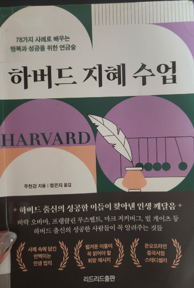 이처럼, 살아가면서 꼭 필요한 법칙들을 모아모아 엮은 책 하버드 지혜수업니다.