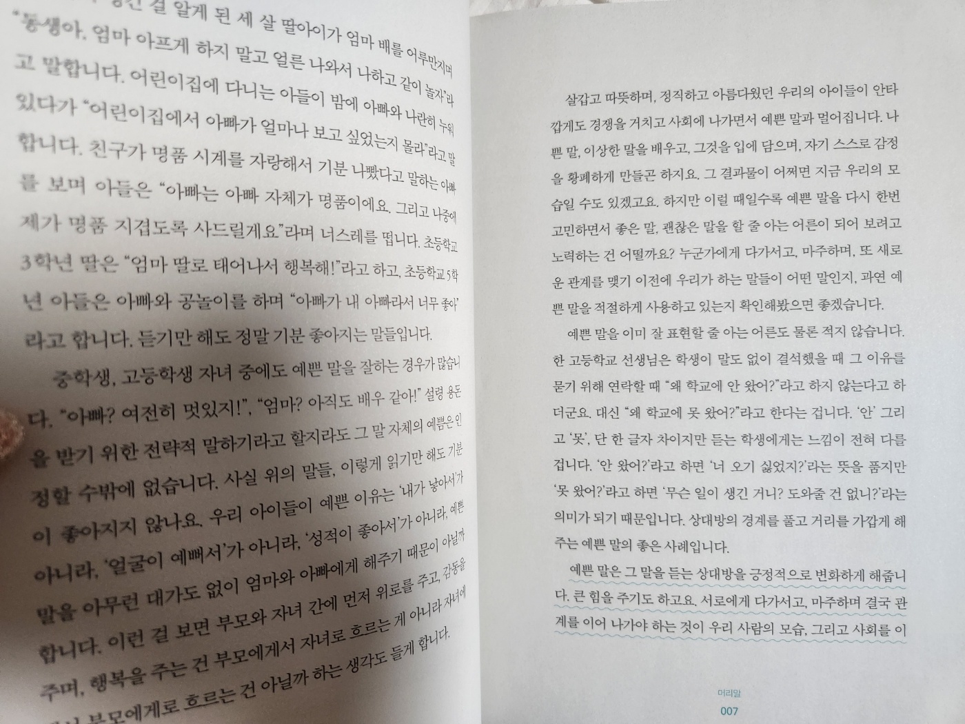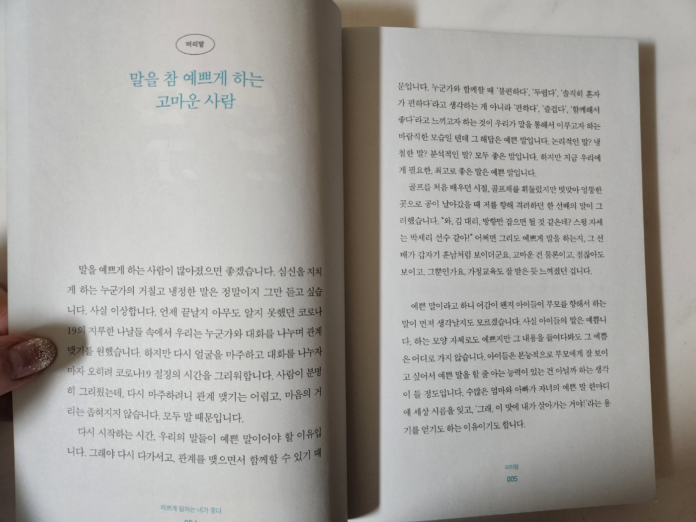 예쁘게 말하는 네가 좋다 책 머리말에서부터, 흥미를 끕니다.
