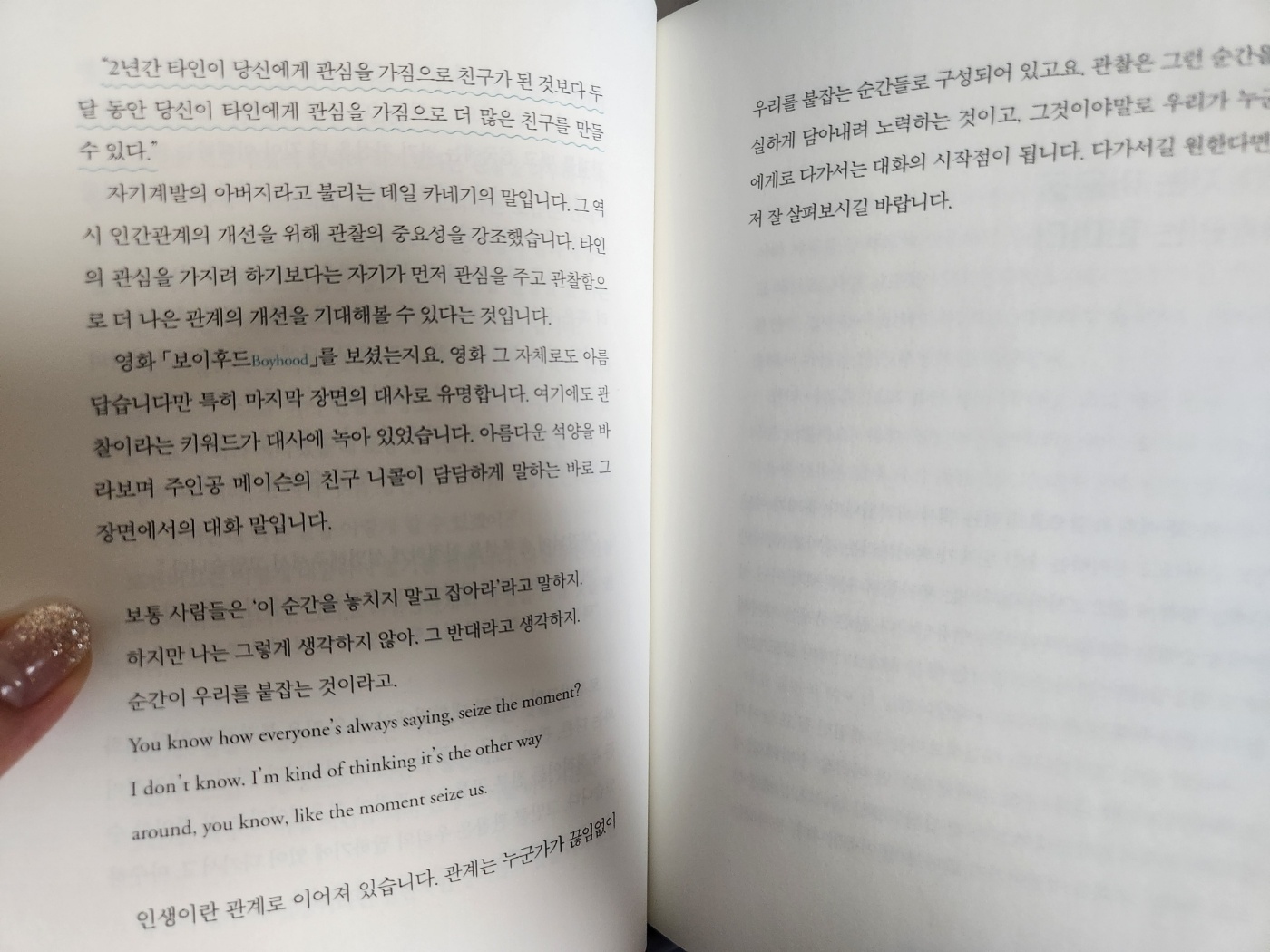 중간중간 유명인사들의 어록과 영화에서 나오는 문구를 예시로 들면서 작가의 생각을 전달하는 것도 좋았습니다.