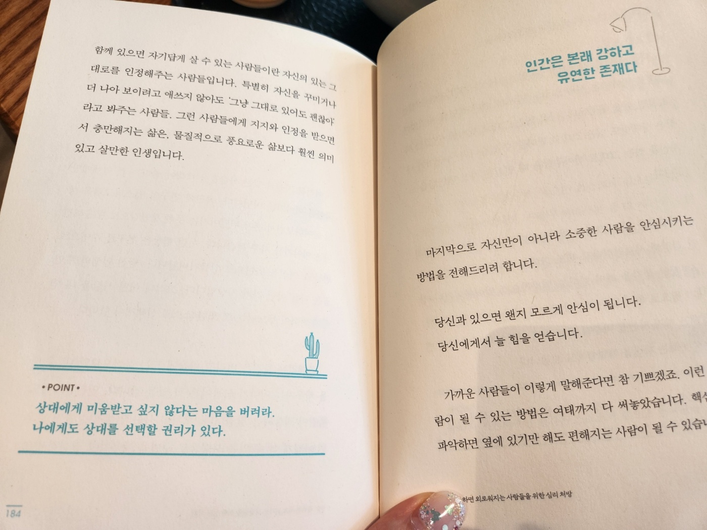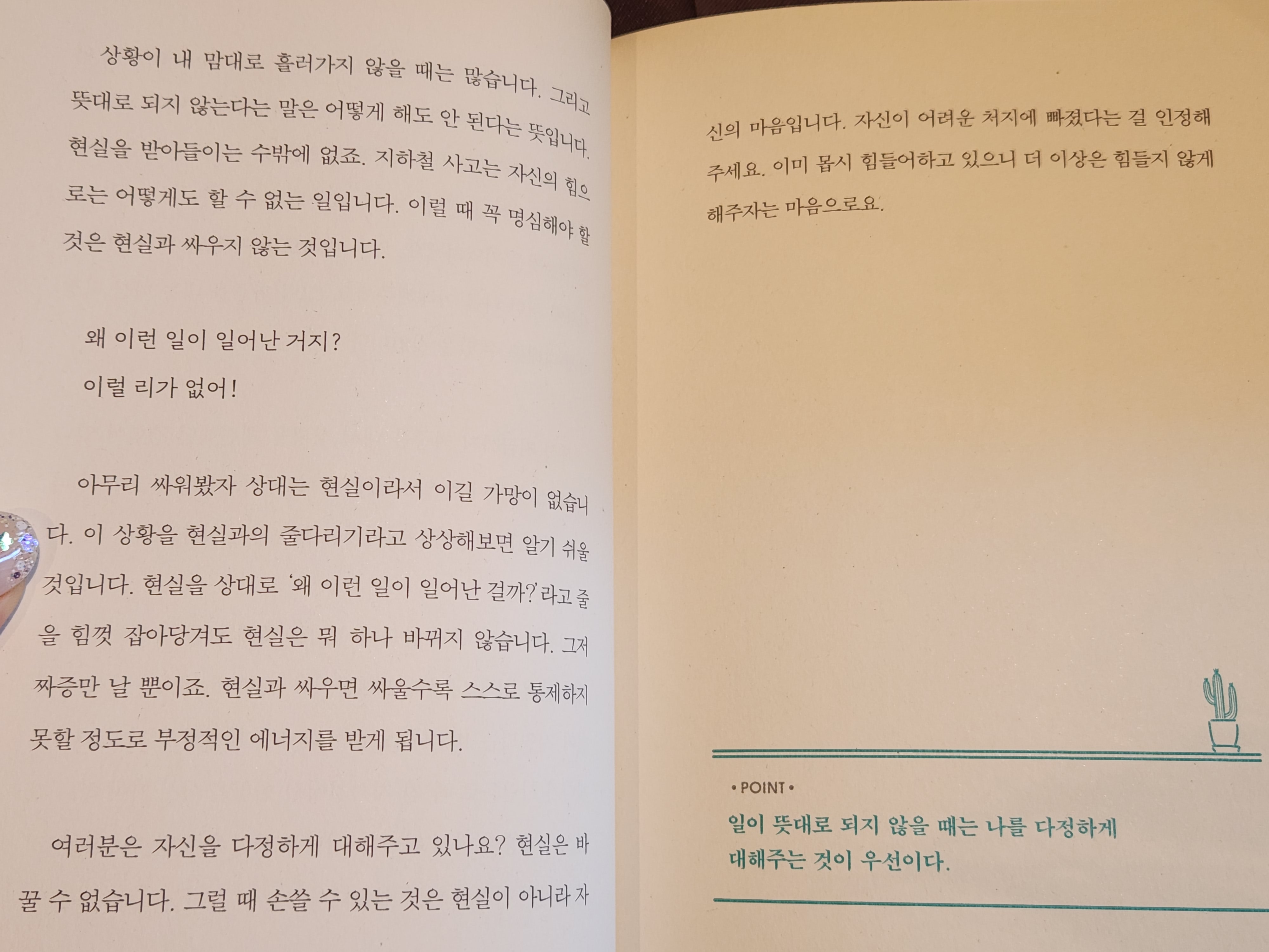 분홍빛 표지가 시선을 끌기도 했지만, 업무때문에 조금은 예민해진 제 모습과 표지의 선인장의 모습이 닮아 보였습니다.