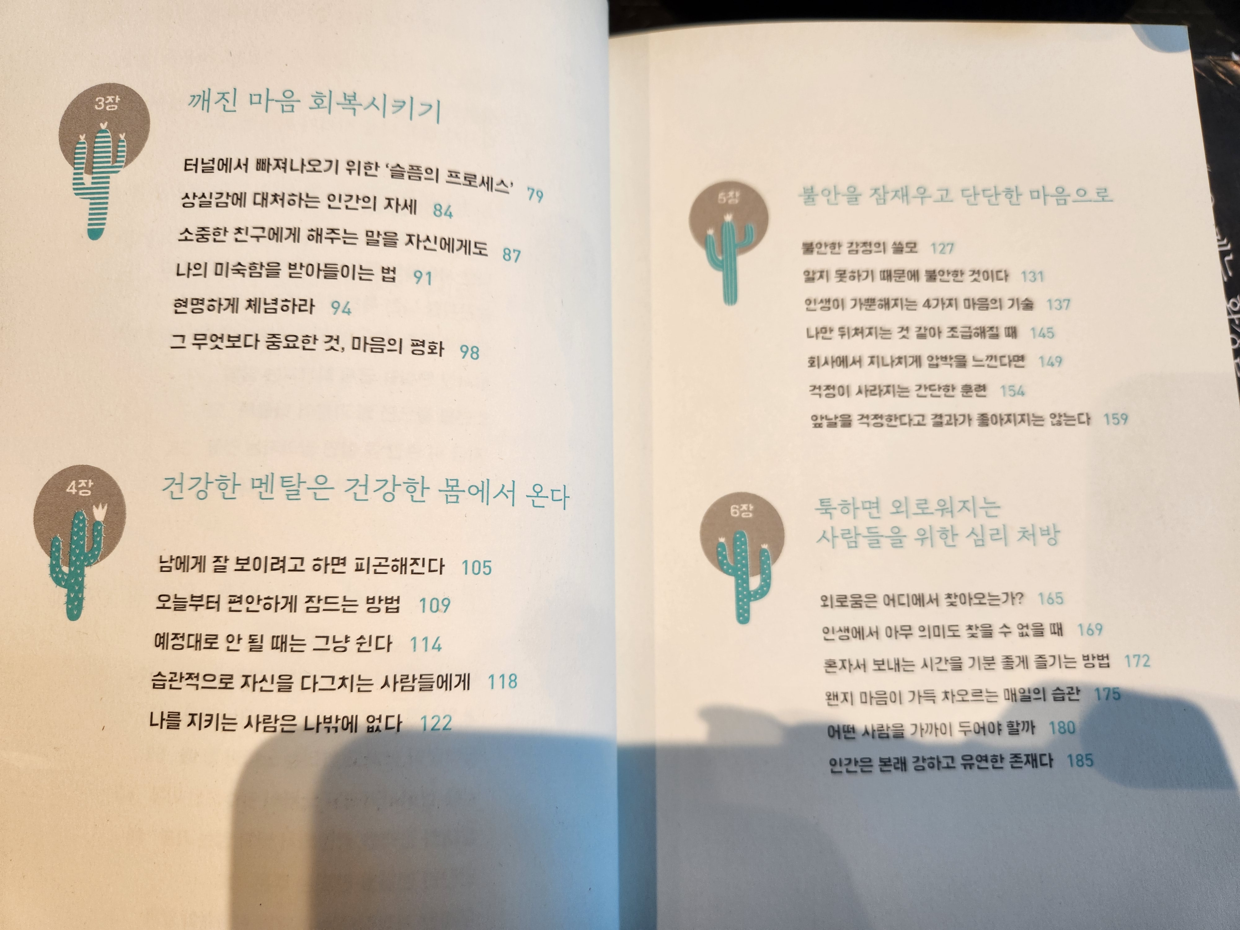 2~3시간 정도면 다 읽을 수 있는 분량입니다. 그리고 필요한 부분만 체크하면서 보시거나, 내가 지금 왜 때문에 쿠크다스 멘탈이 되었는지 원인을 아신다면, 해당 챕터로 바로 찾아 읽어도 될 듯합니다.