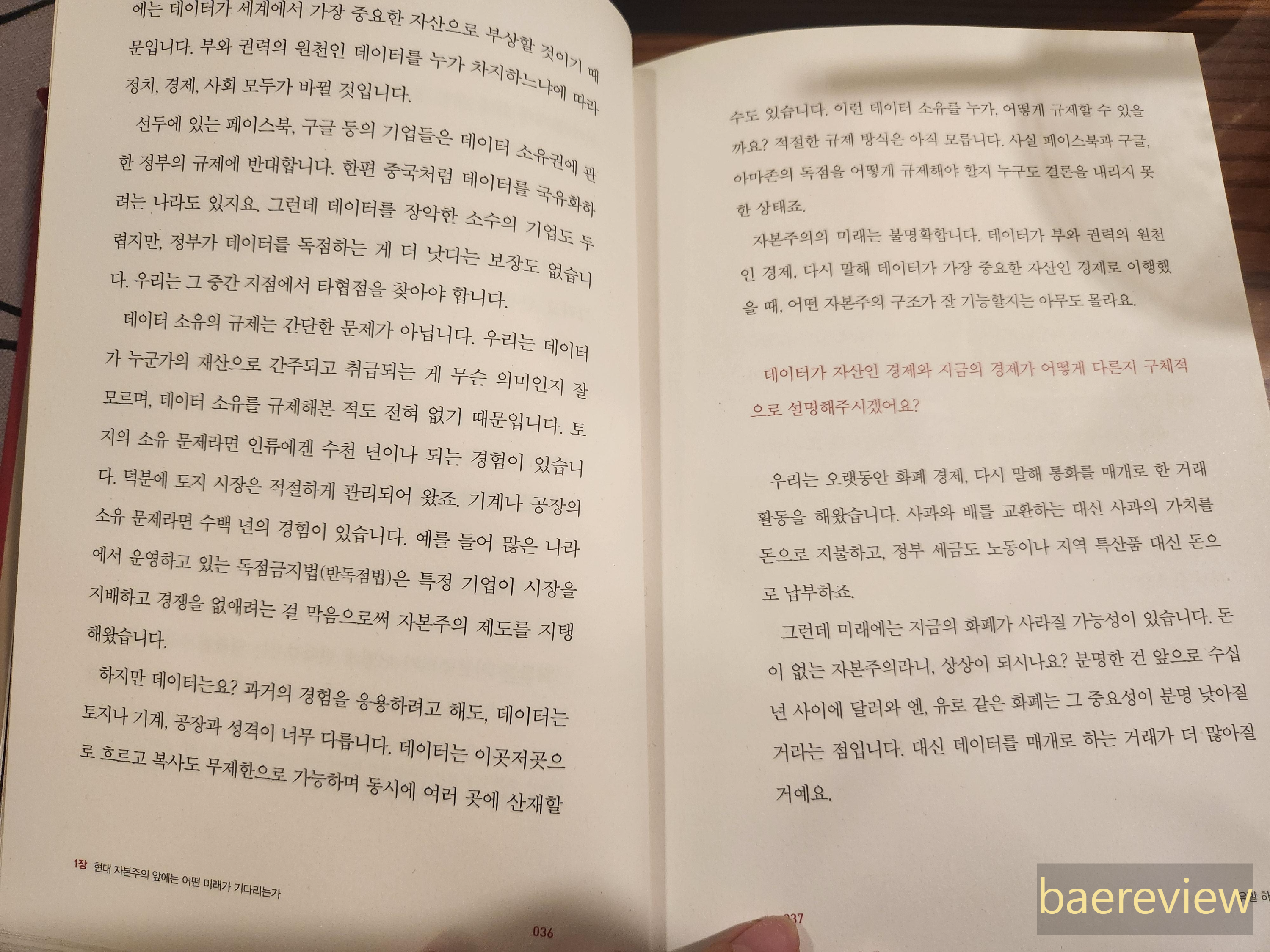주로 자본주의에 대한 성격, 의의, 그리고 앞으로 미래에서 자본주의에서 중요하게 다루어질 것을 데이터로 소개합니다. 부와 권력의 원천인 데이터를 누가 차지하느냐에 따라 정치, 경제, 사회가 모두 바뀔 것이라고 합니다.