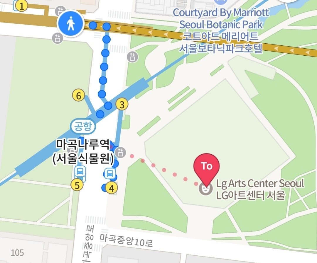 LG SIGNITURE HALL 은 마곡나루역(서울식물원) 역 4번출구 지하로 이어집니다.
