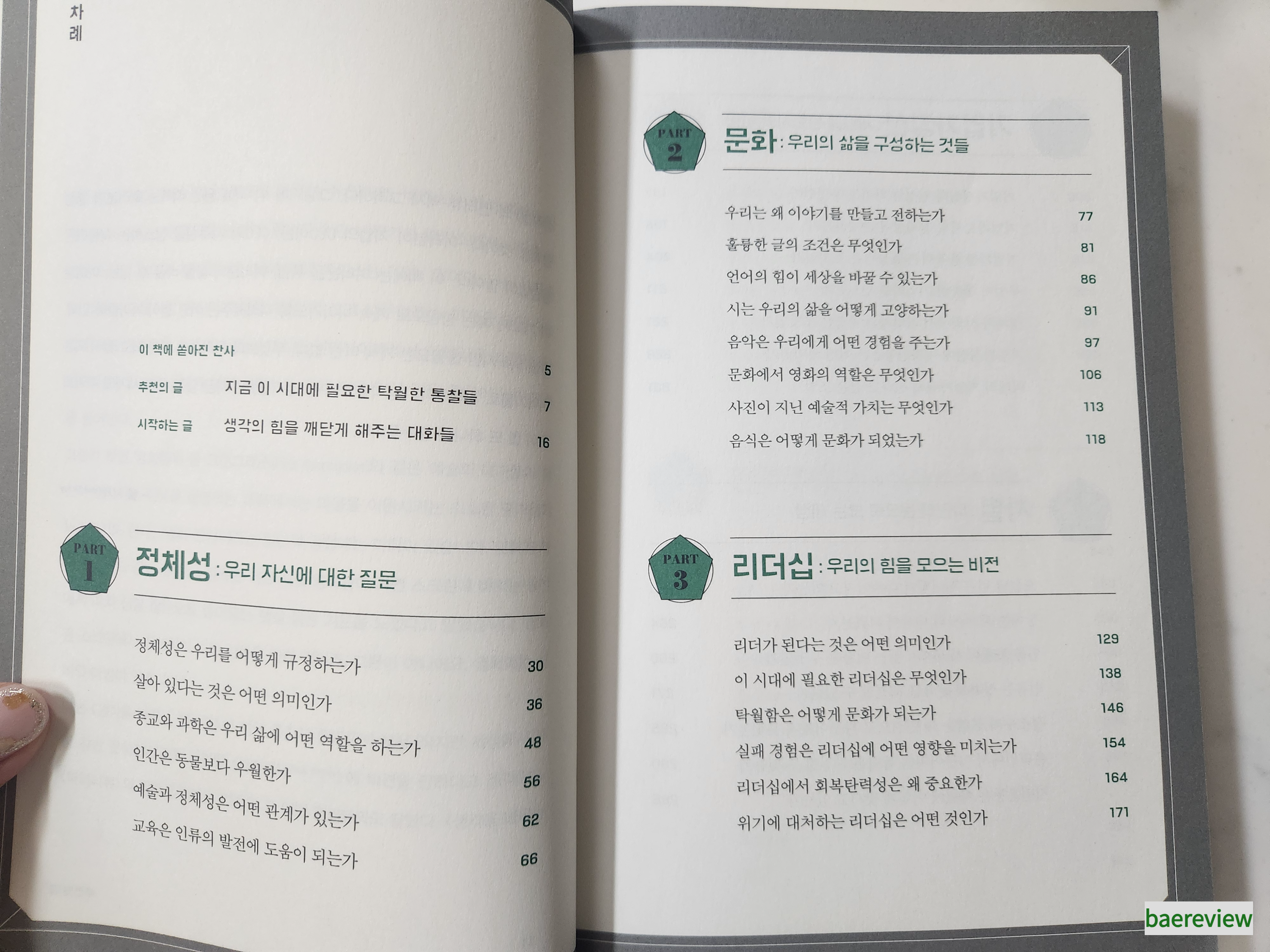 총 7가지의 테마 아래, 소질문에 대한 생각들이 엮여 있습니다.