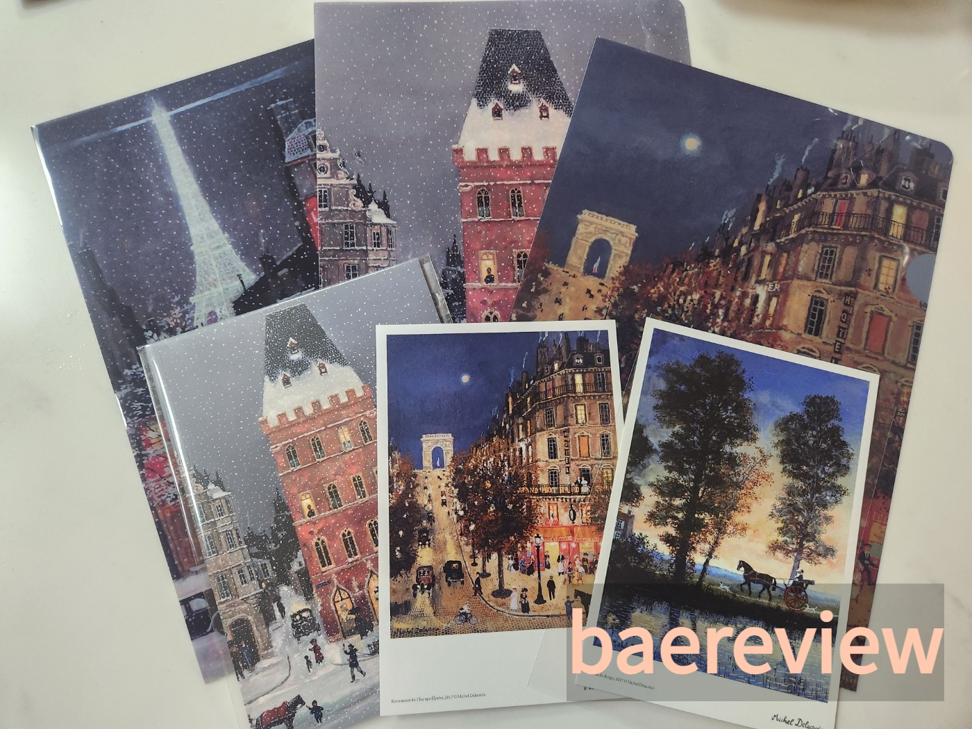 그 틈을 비집고 열심히도 구경했습니다. 다양한 종류의 상품들이 있었고, 품절 된 상품들도 있었습니다. 저는 클리어파일 3개와 노트1개 엽서2개 골랐고, 같이 전시회 온 작가 친구에게 선사할 노트 1개도 구매해서, 선물했습니다.