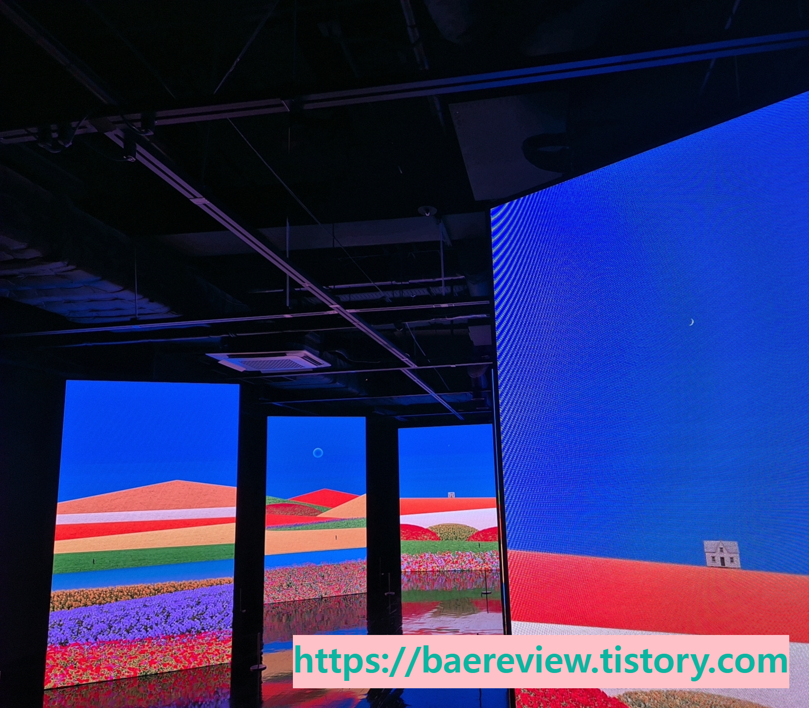 아마 제가 지금 보다 더 어렸다면, 이번 전시회를 보고 예쁜 그림체와 예쁜 색감, 그리고 SF영화에서 볼 수 있을 것 같은 미디어 작품들을 보고 홀릭 되었을 수도 있습니다. 영화 듄2는 아직 못봤지만, 듄1영화에서 처럼 사막소재로 한 섹션들도 있습니다. 해당 섹션에서는 알게 모르게 고요함도 느껴졌습니다.