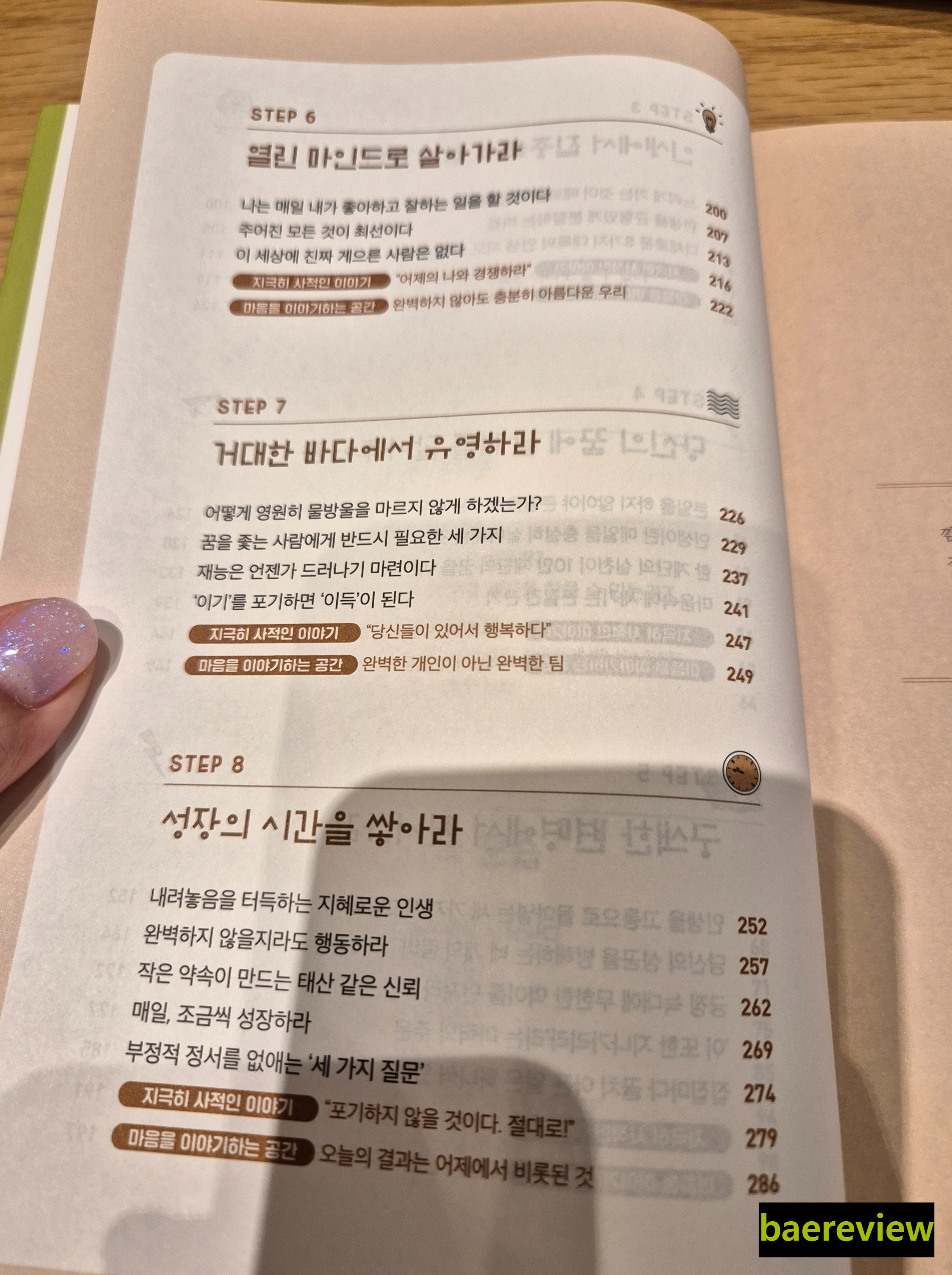 개인적으로 이 책의 스텝별 전달하는 이야기도 좋았지만, 각 스텝 뒤에 저자의 '지극히 사적인 이야기'와 코너와 '마음을 이야기하는 공간' 코너가 좋았습니다.