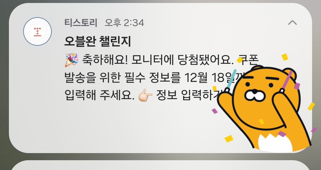 11월에 티스토리에서 운영했던 일명 "오블완 챌린지"에 참여했고, 운이 좋게도 좋은 일이 있었습니다.