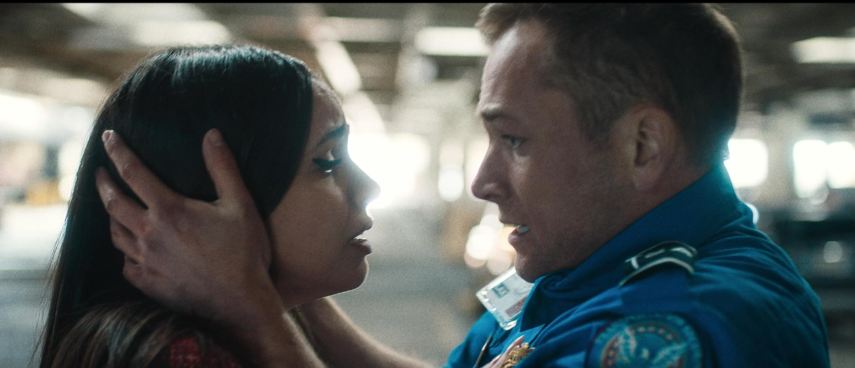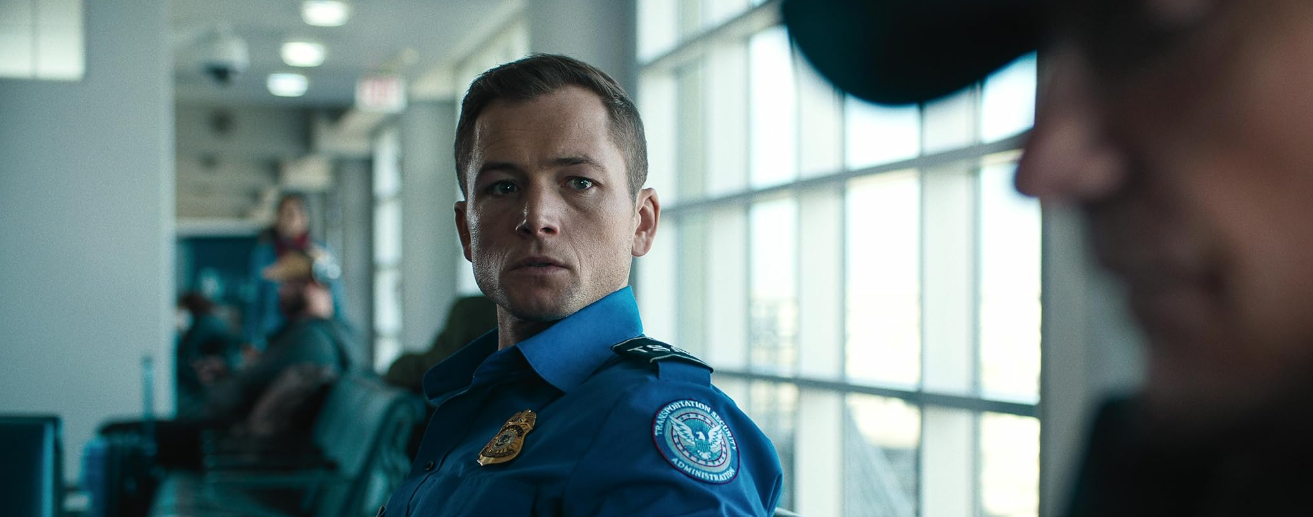 공항에서 일하는 에단 코펙(타론 에저트 배우)의 여자친구 노라(소피 카슨)를 만나 아이를 가질 예정이라는 사실을 알게 됩니다. 사람이 붐비는 보안 체크인 카운터에서 TSA 요원으로 일하는 에단은 이어피스를 전달 받고 이를 귀에 꽂고 지시에 따르라는 문자메시지를 받습니다.