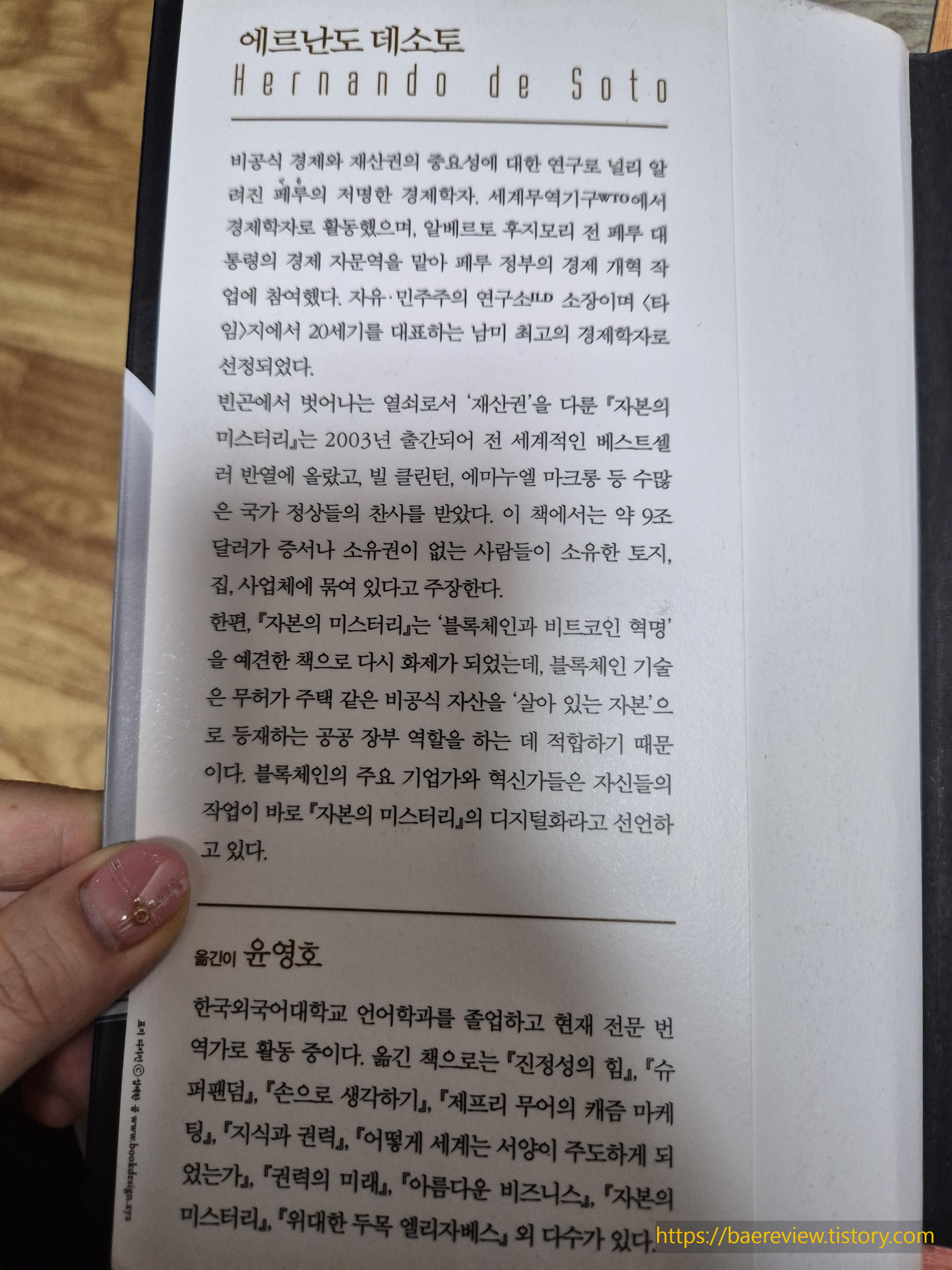 소유권과 재산권을 강조하는 책 <자본의 미스터리>입니다.