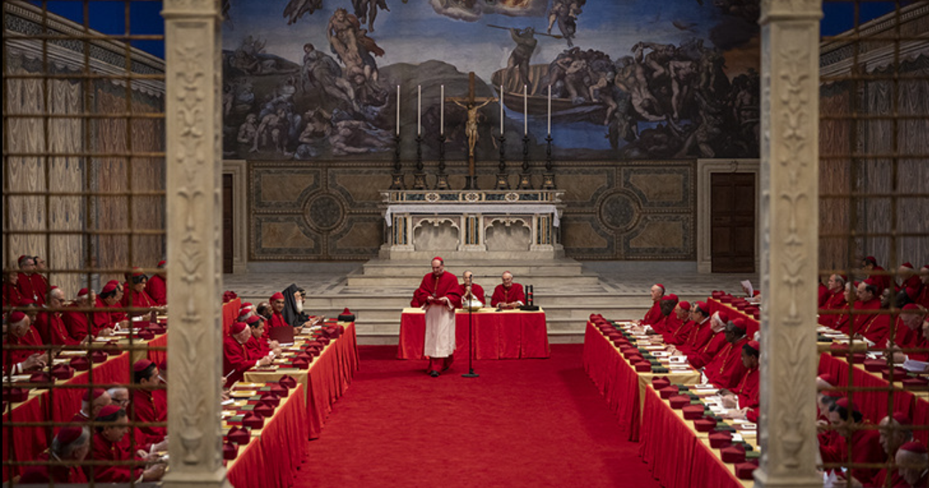 가톨릭교회의 최고 지도자 교황이 선종하면서 영화가 시작됩니다. 예기치 못하게 교황이 죽자, 전 세계 곳곳에서 118명의 추기경들이 시스티나 예배당에 모여 다음 교황을 선출하기 위한 회의를 시작합니다.