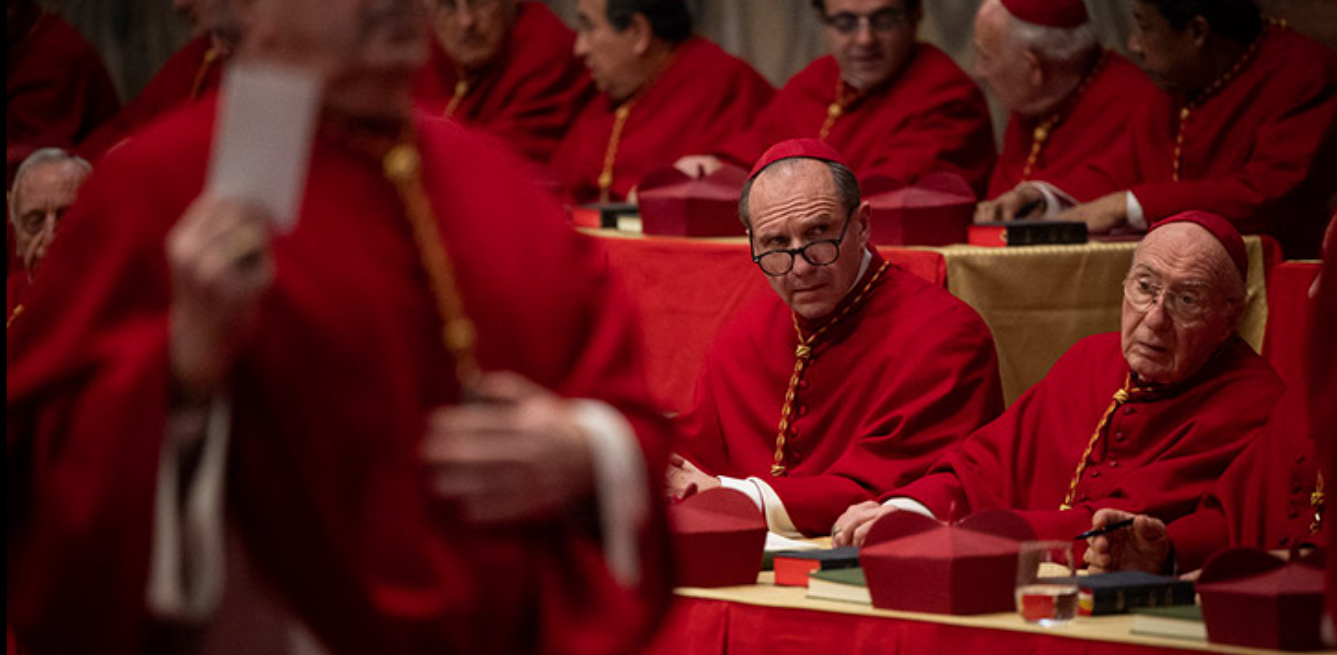 새로운 교황을 선출하게 되는 상황에서 로렌스(랄프 파인즈)는 단장으로서 선거를 총괄하게 되고, 모든 회의는 비밀리에 진행됩니다. 교황에 유력 후보자들은 총 4명, 프랑스계 캐나다인 조지프 트랑블레 추기경, 나이지리아인 조슈아 아데예미 추기경, 이탈리아인 조프레도 테테스코 추기경, 이탈리아인 알도 벨리니 추기경으로 추려집니다.