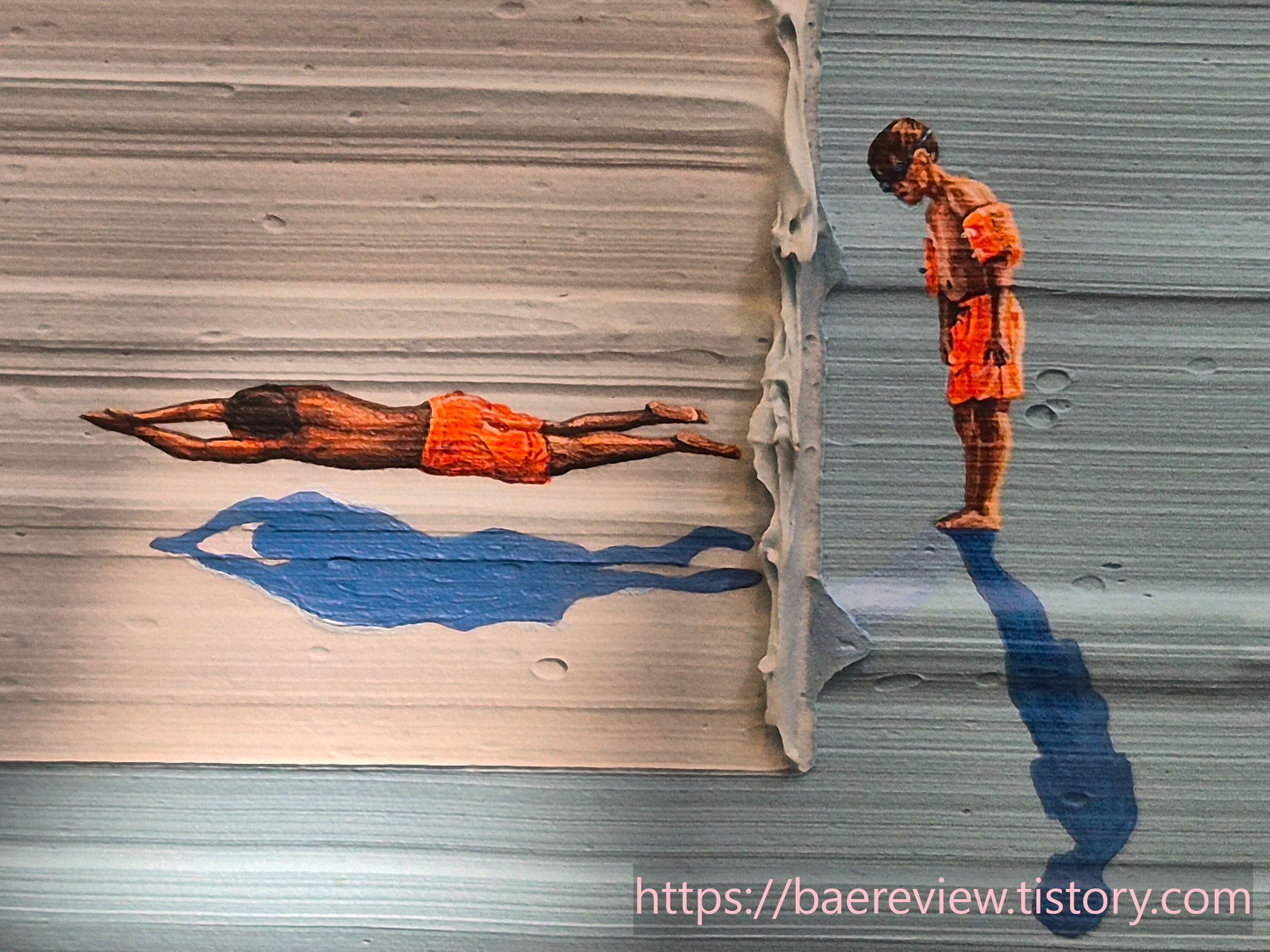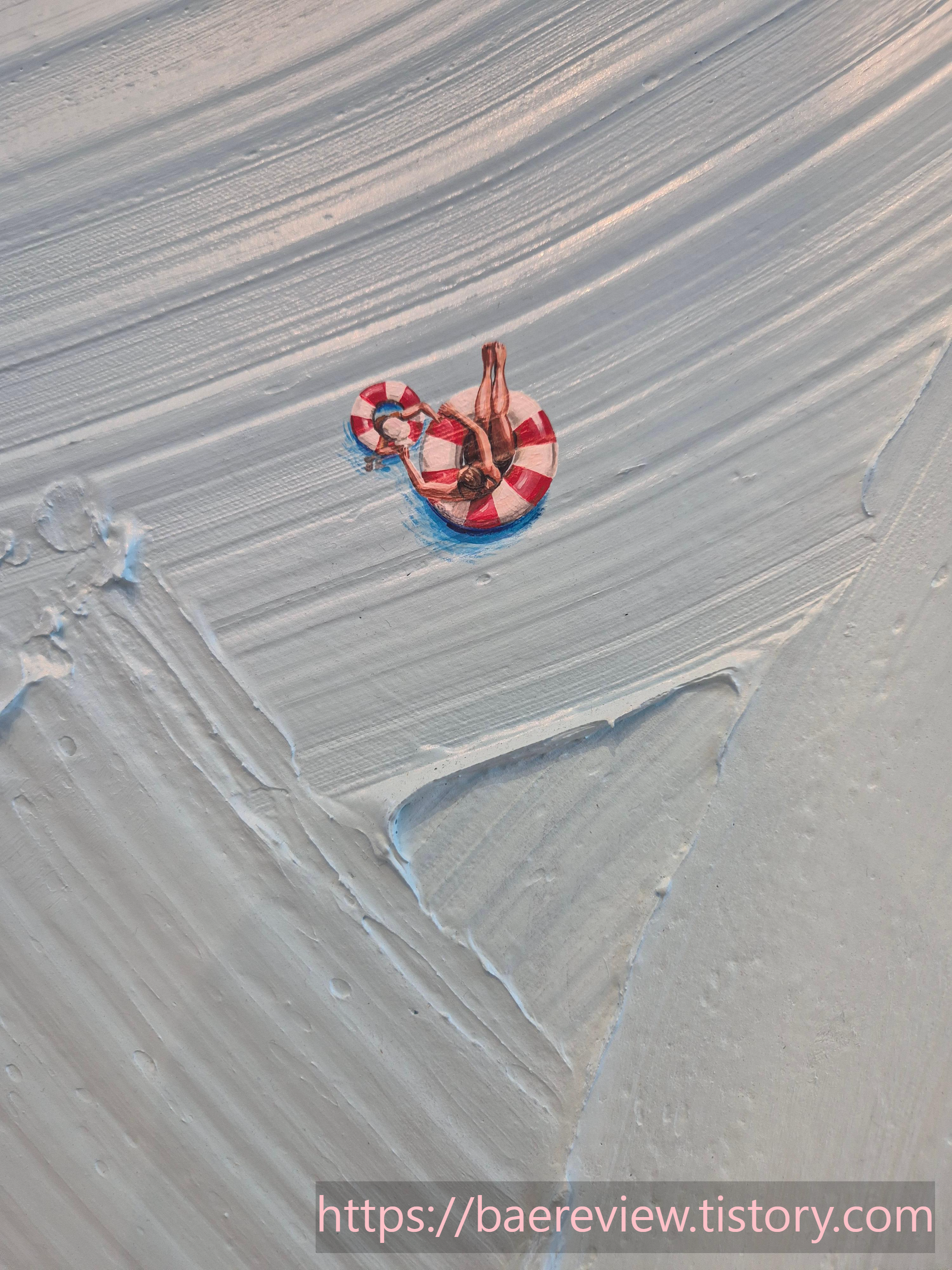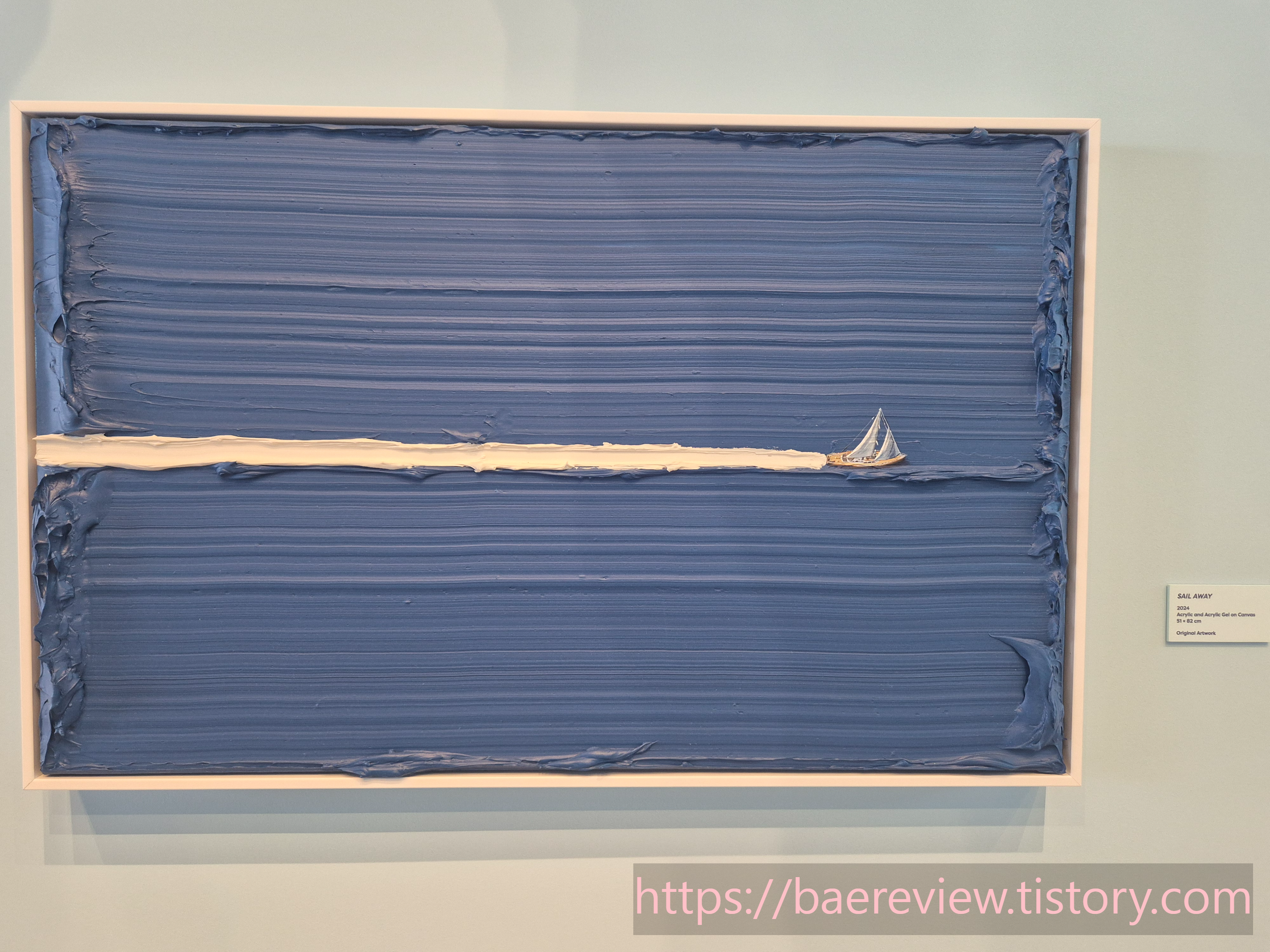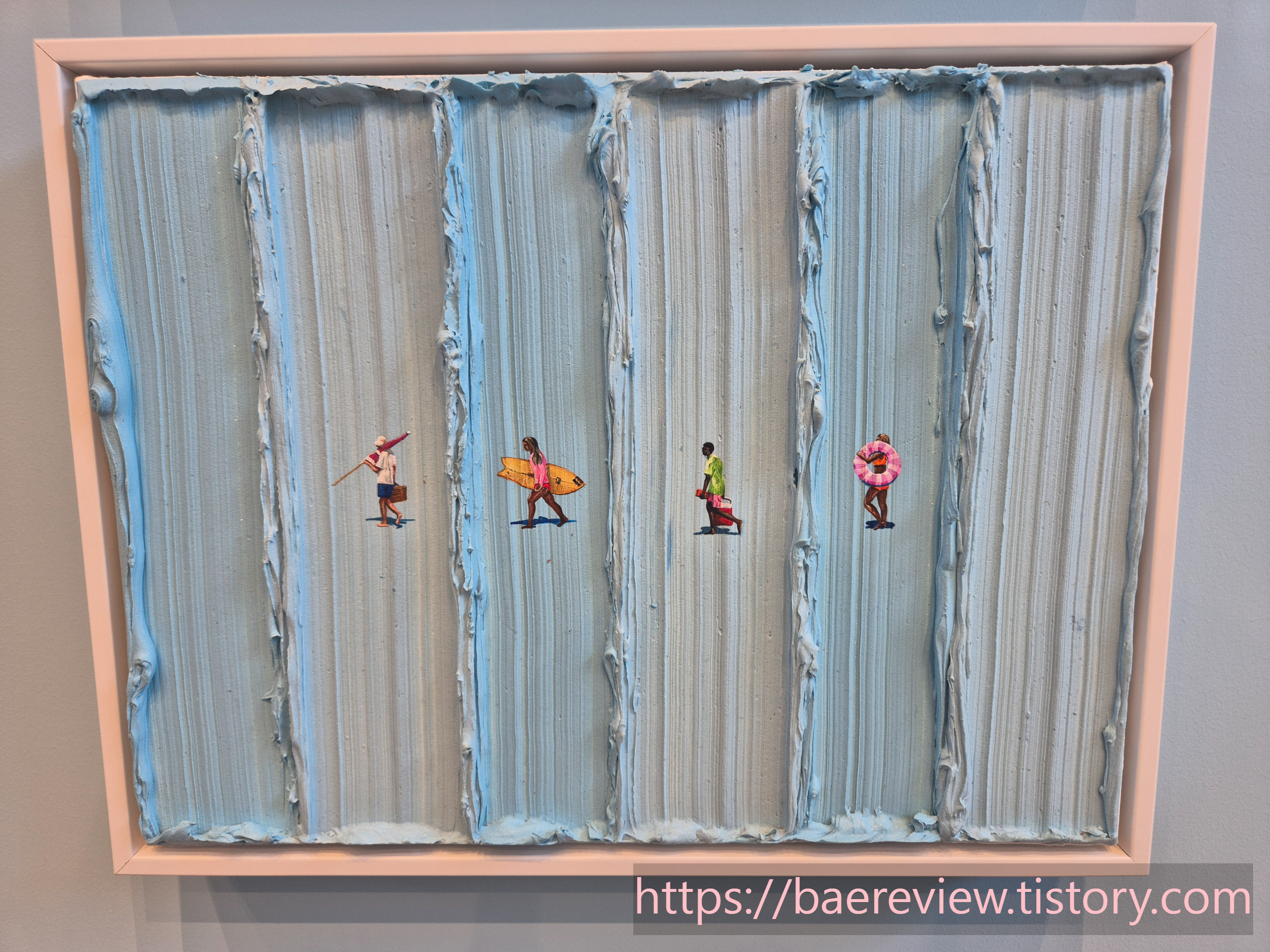 특유의 질감 표현 기법으로 작품들의 푸른 색조를 활용하여, 두꺼움 질감과 수영, 서핑, 세일링 등을 하는 작은 인물들을 특징으로 잘 표현하고 있습니다. 모든 작품들이 각기 다른 모양과 제스쳐가 담겨있어서 보는 재미가 있었고, 디테일이 풍부하였습니다.
