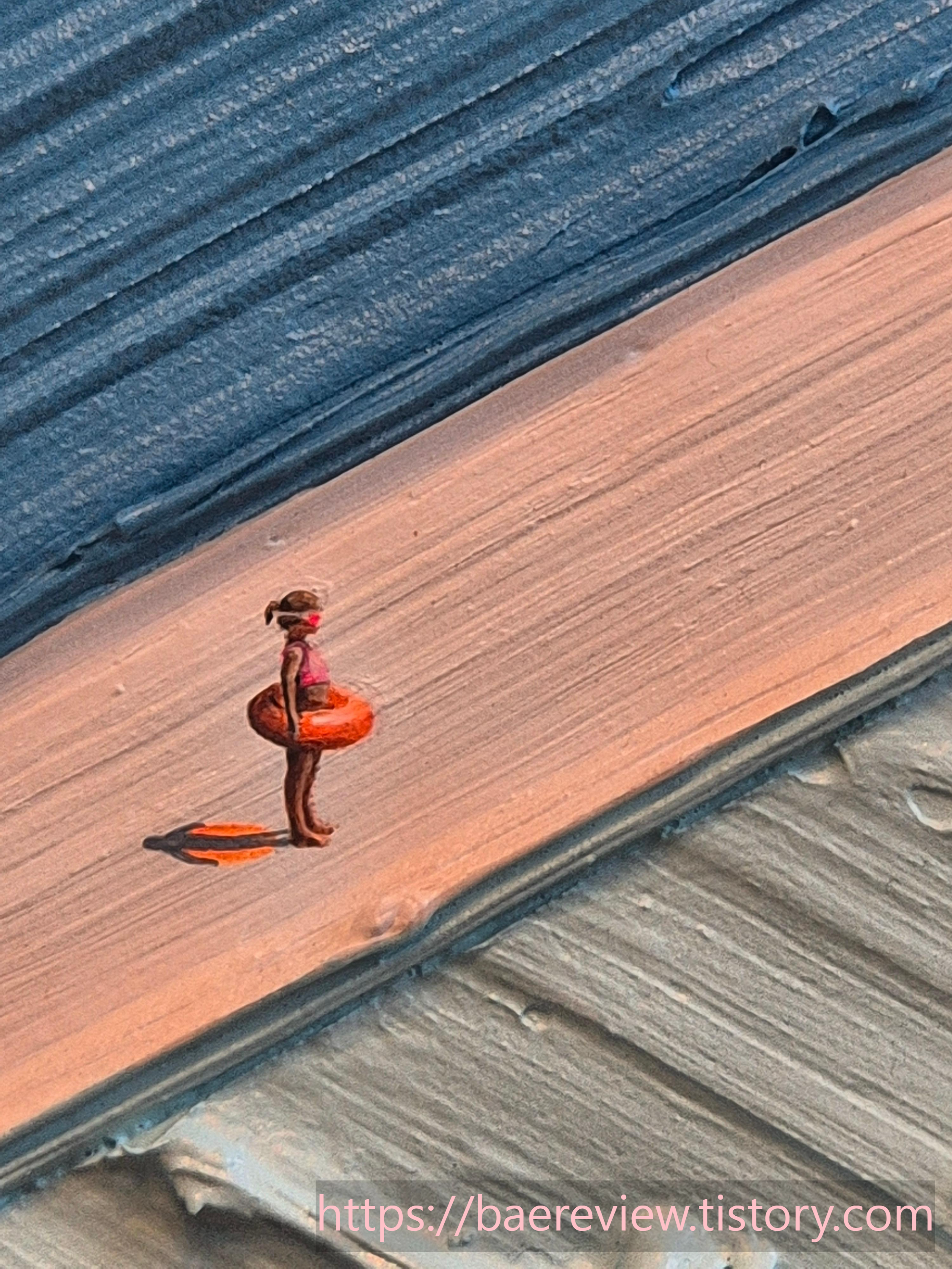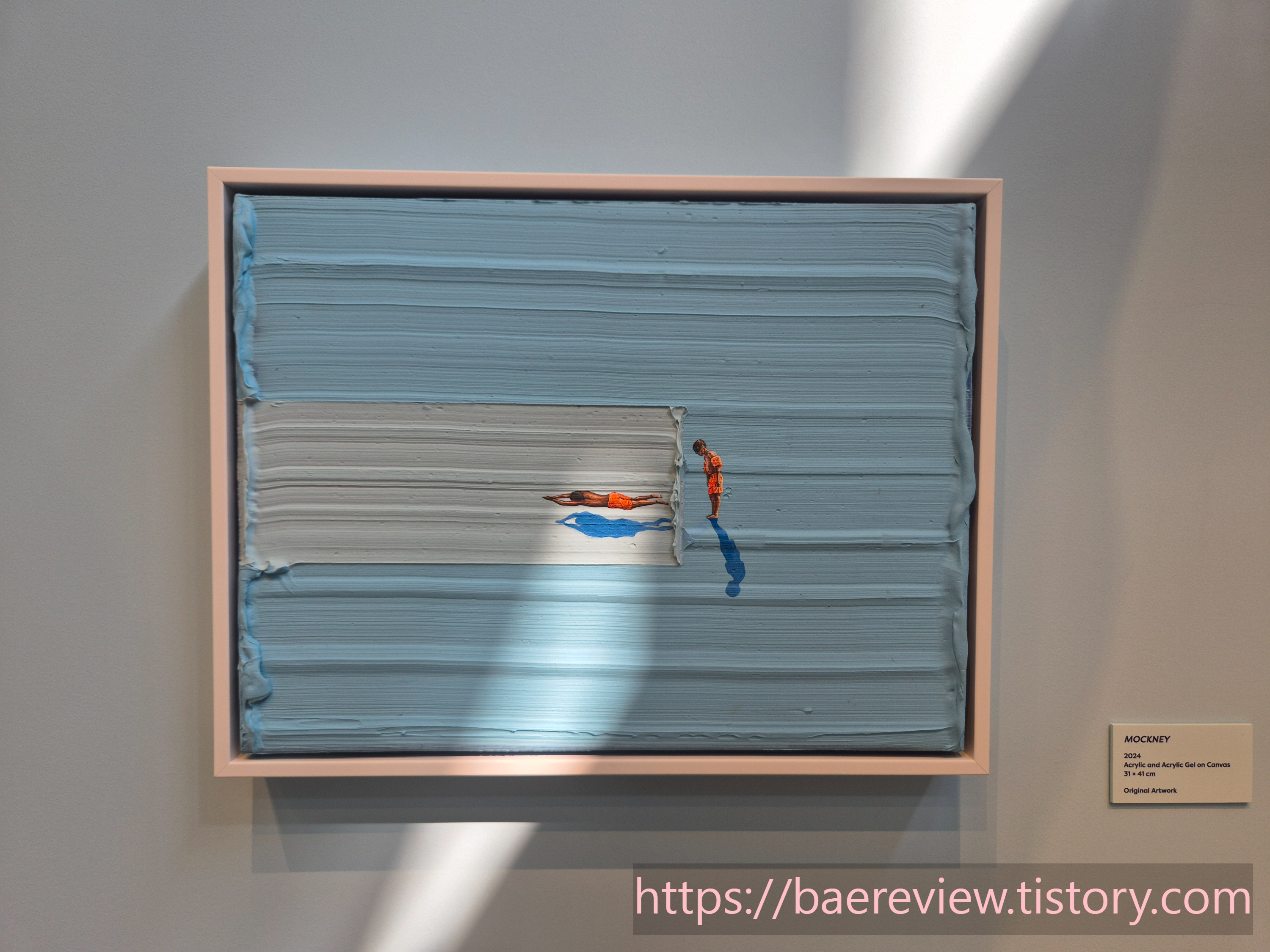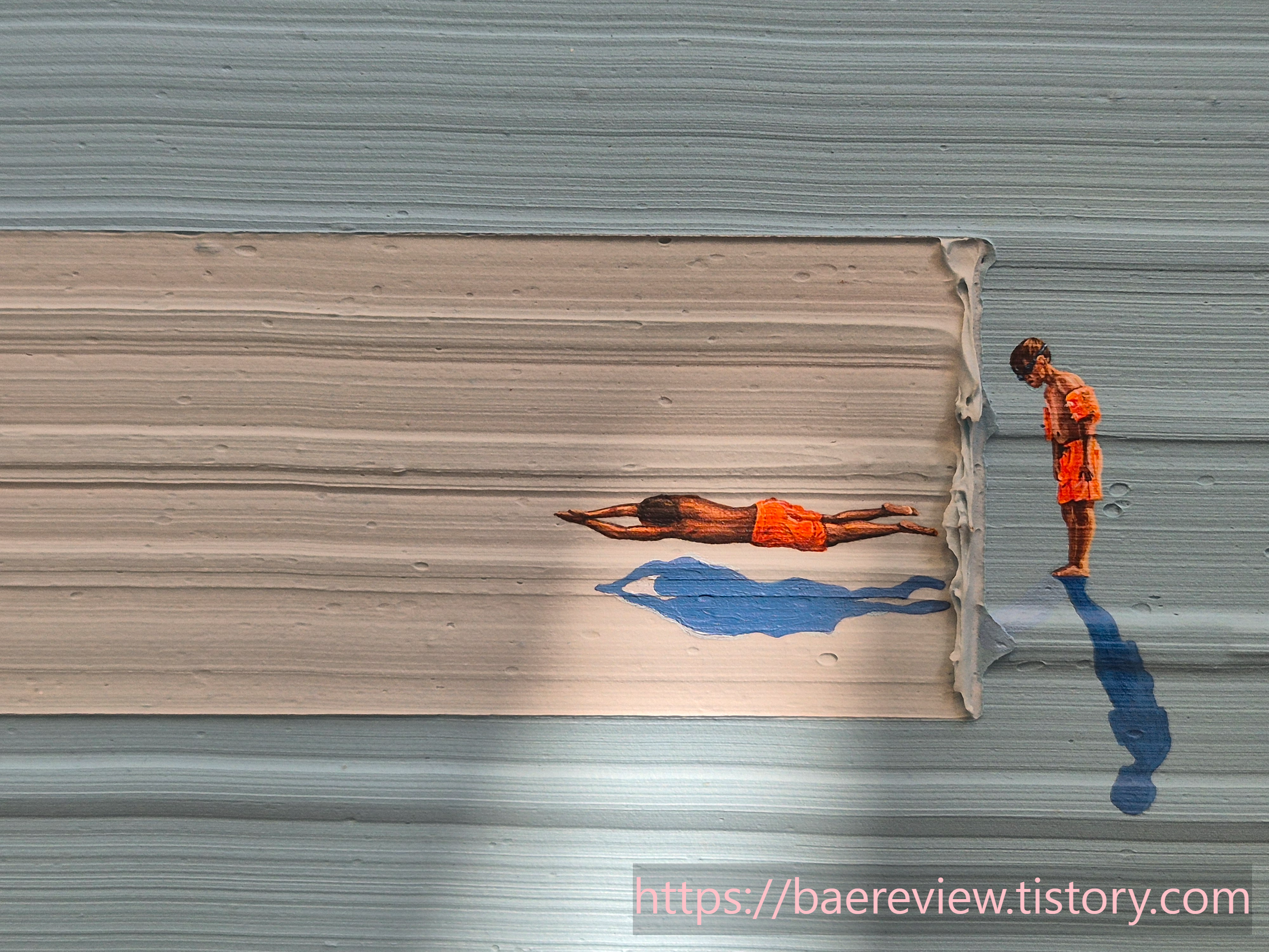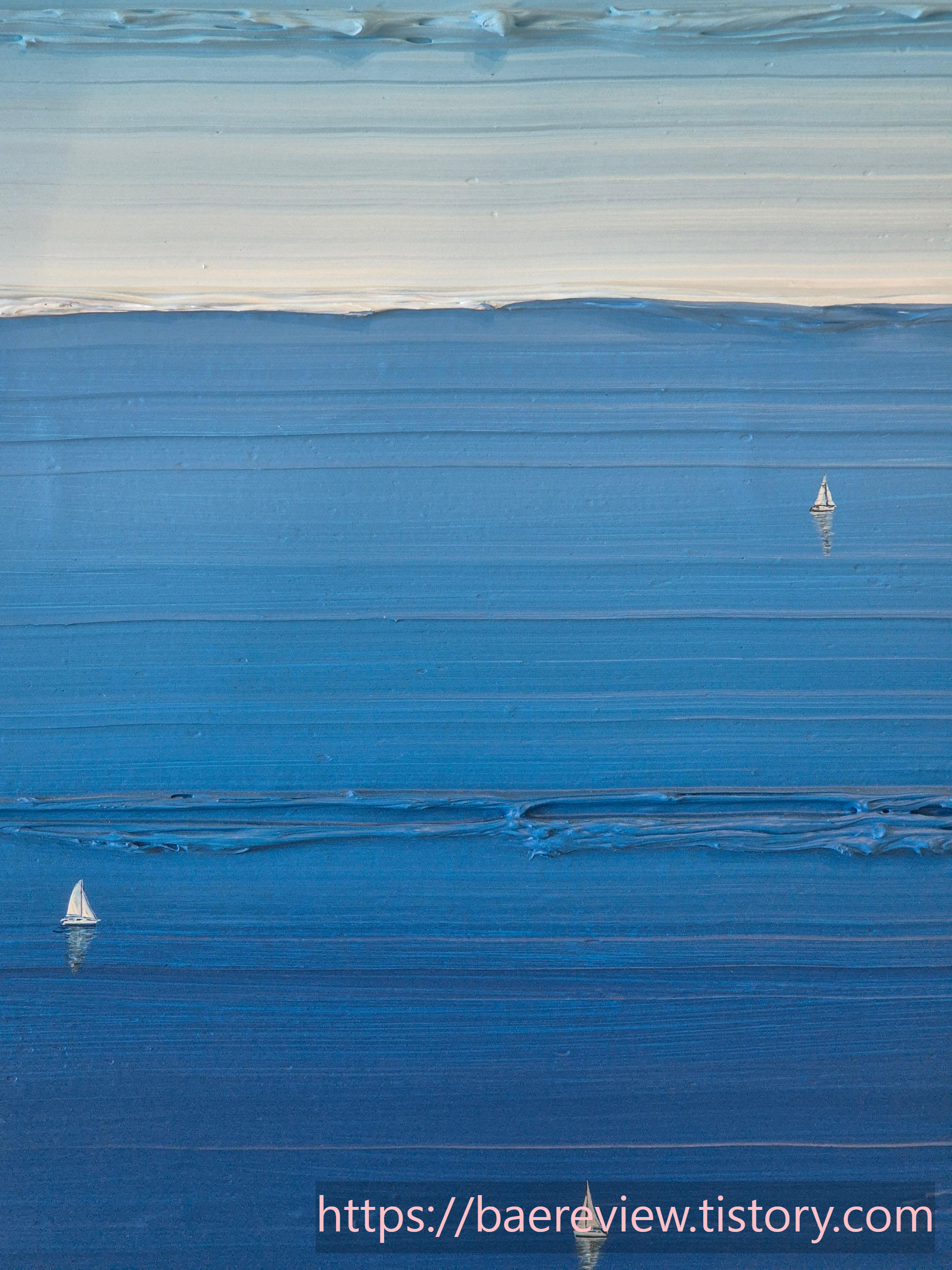 특유의 질감 표현 기법으로 작품들의 푸른 색조를 활용하여, 두꺼움 질감과 수영, 서핑, 세일링 등을 하는 작은 인물들을 특징으로 잘 표현하고 있습니다. 모든 작품들이 각기 다른 모양과 제스쳐가 담겨있어서 보는 재미가 있었고, 디테일이 풍부하였습니다.