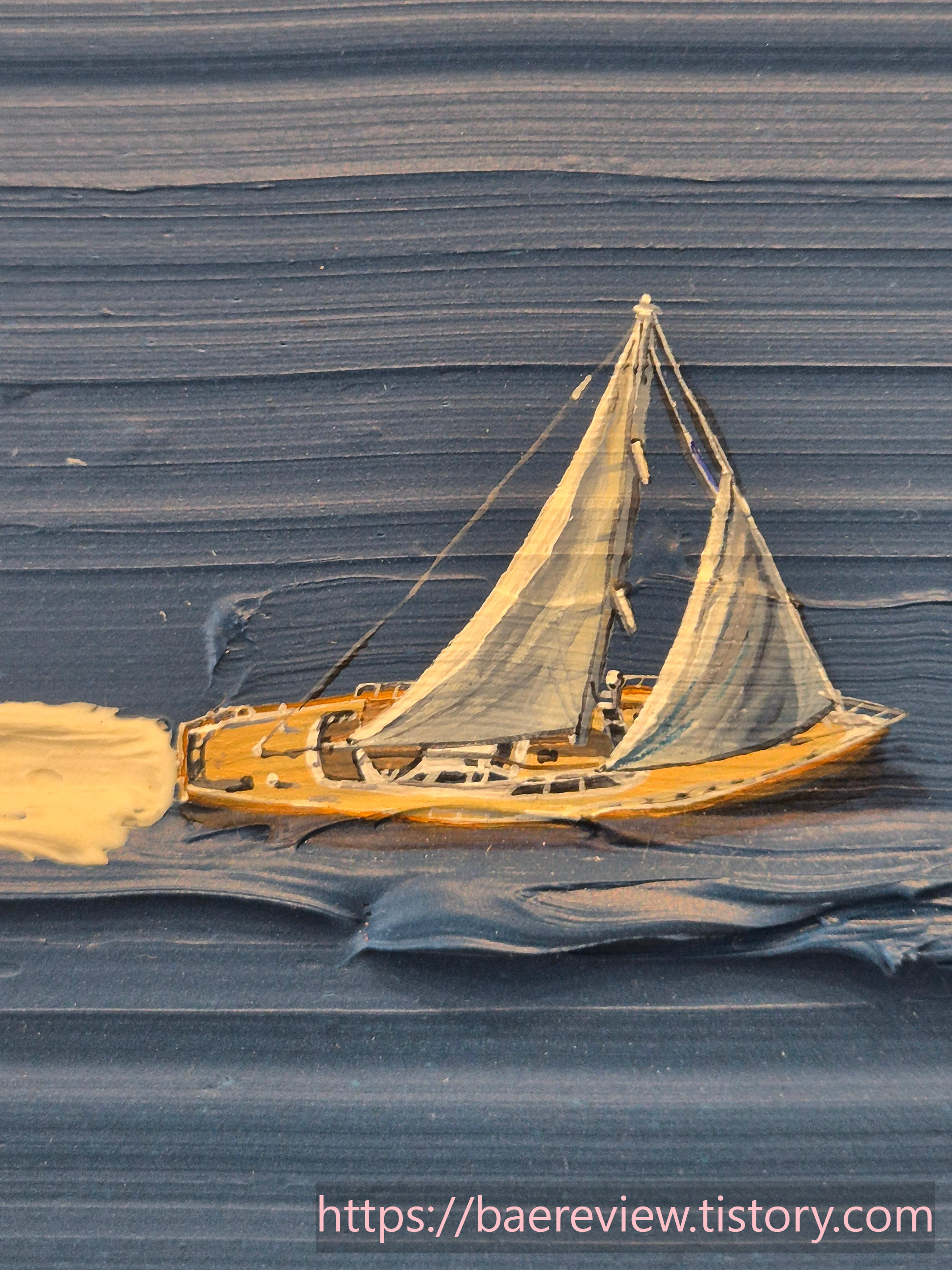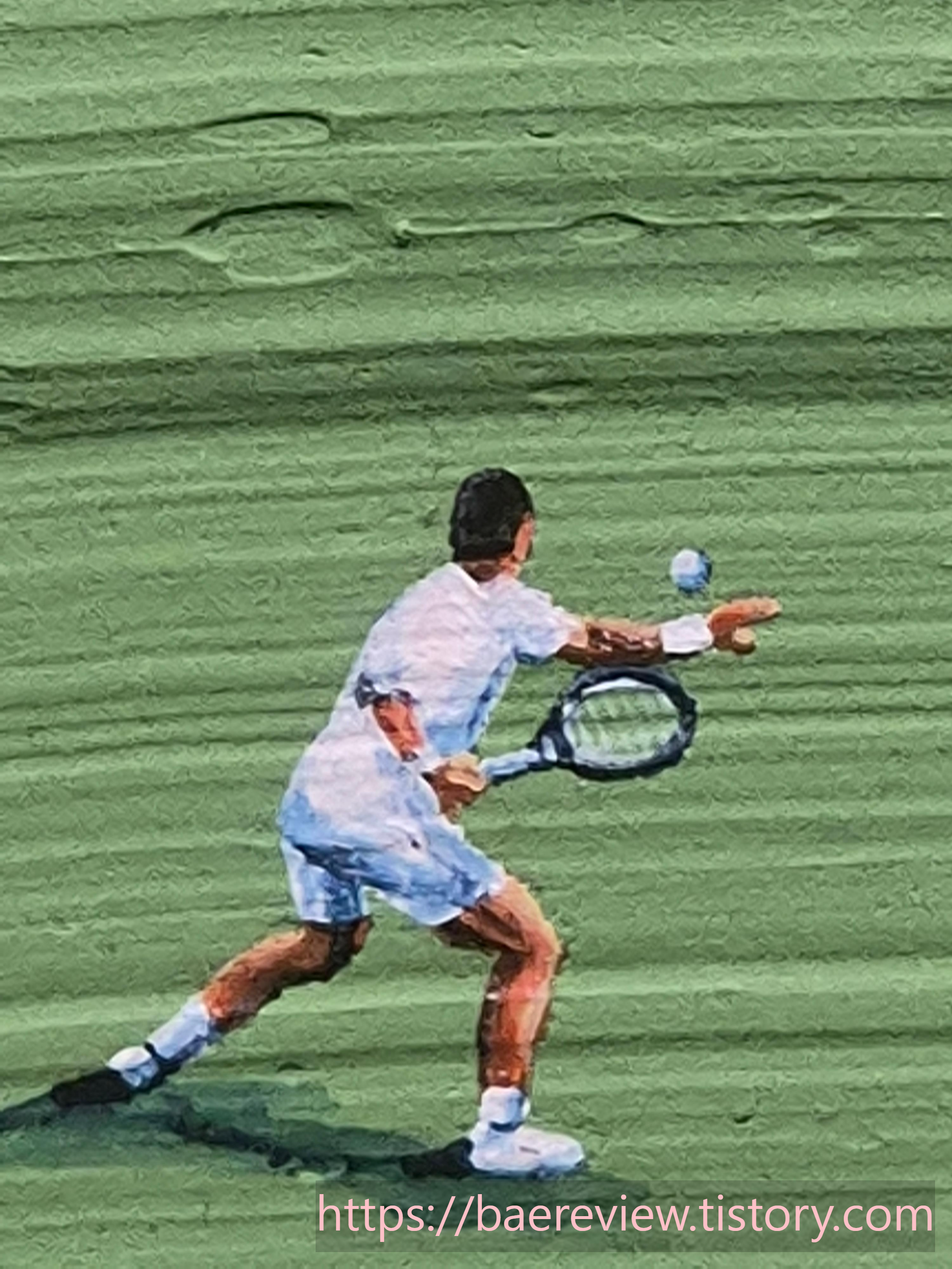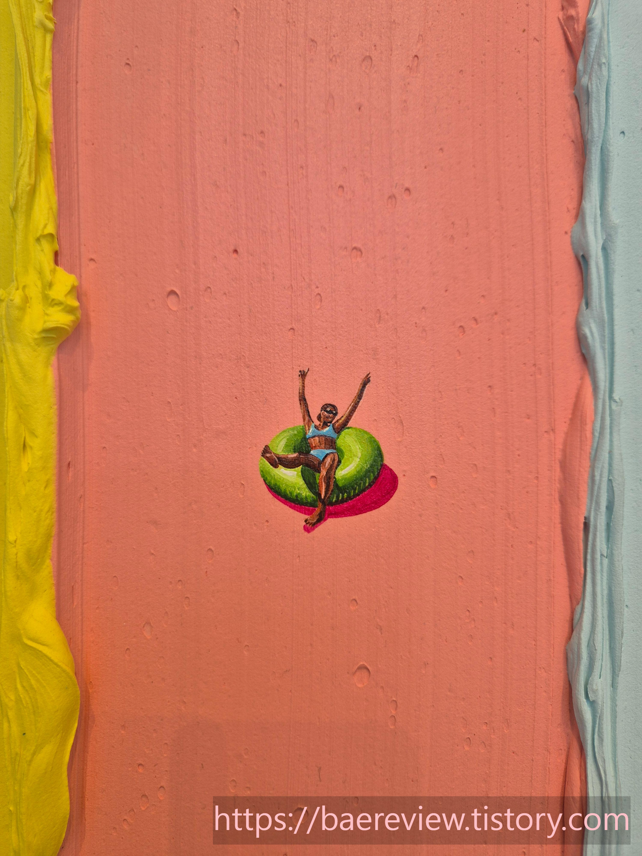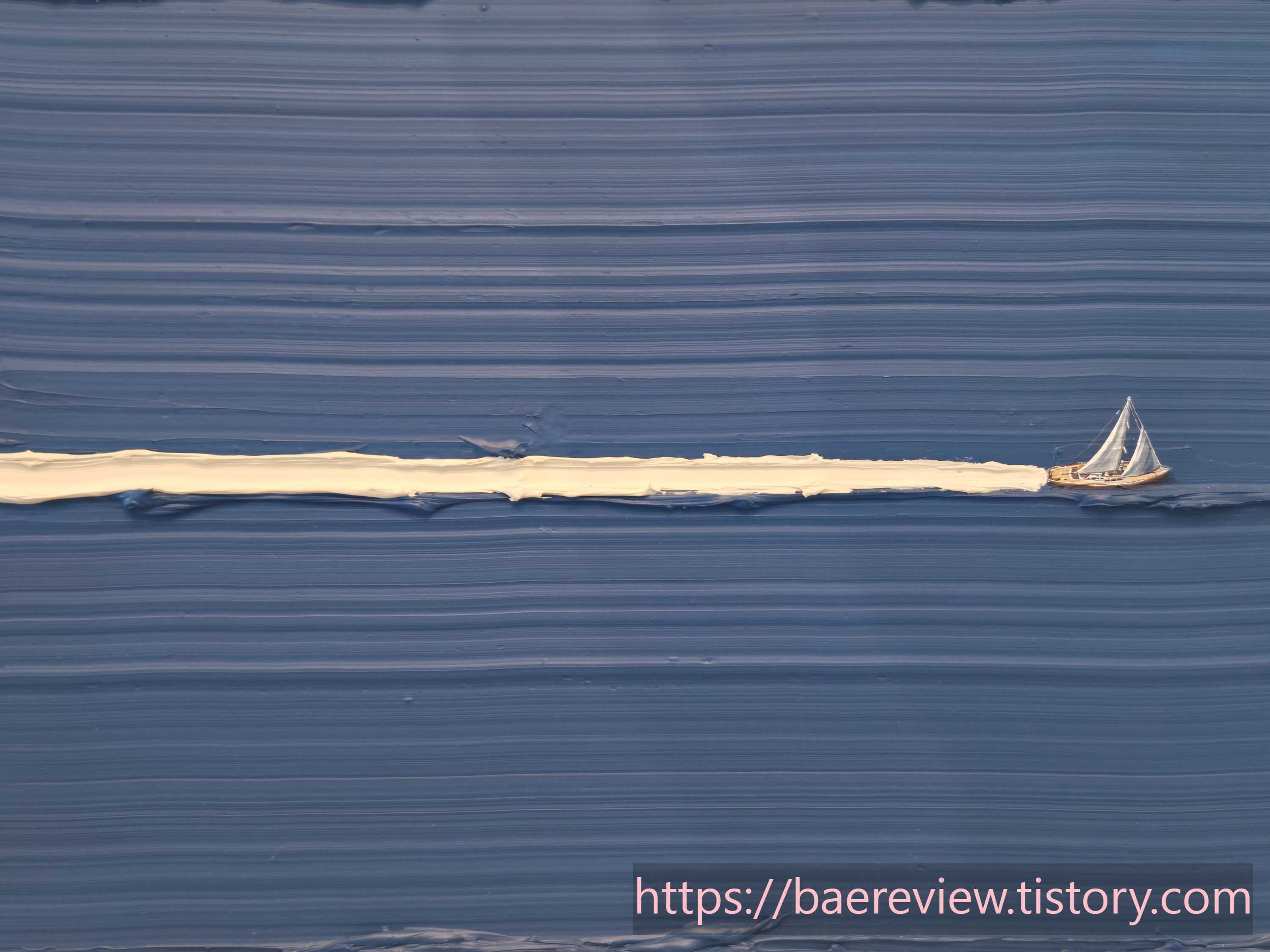 특유의 질감 표현 기법으로 작품들의 푸른 색조를 활용하여, 두꺼움 질감과 수영, 서핑, 세일링 등을 하는 작은 인물들을 특징으로 잘 표현하고 있습니다. 모든 작품들이 각기 다른 모양과 제스쳐가 담겨있어서 보는 재미가 있었고, 디테일이 풍부하였습니다.