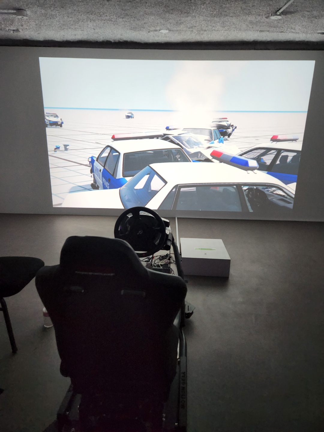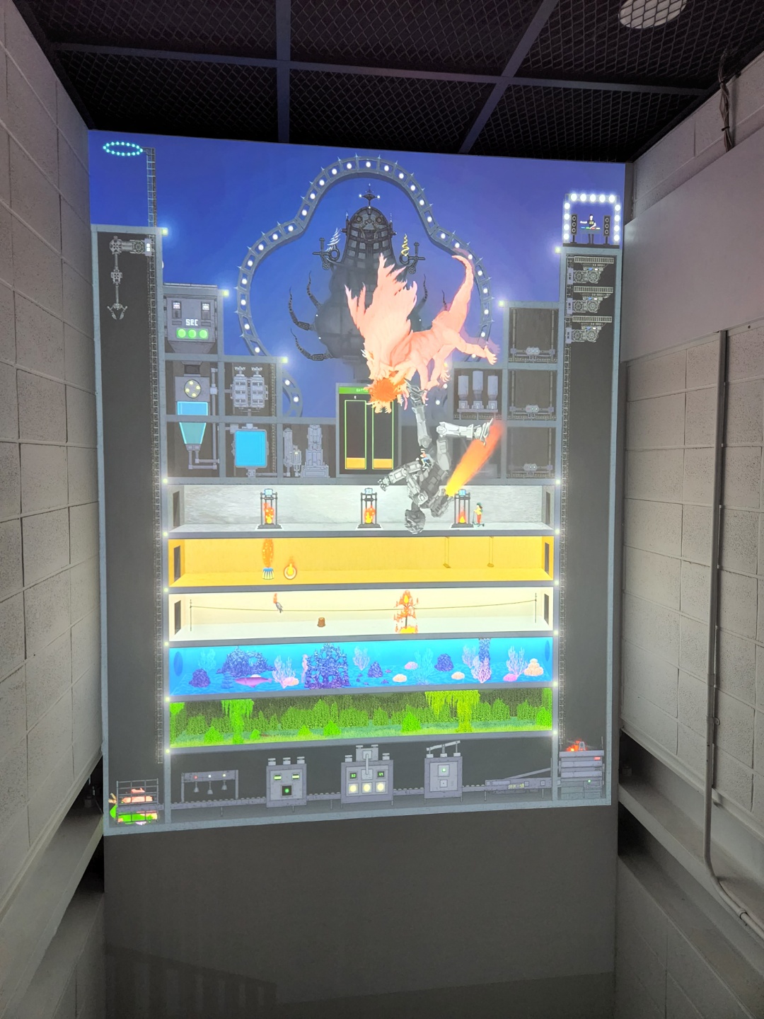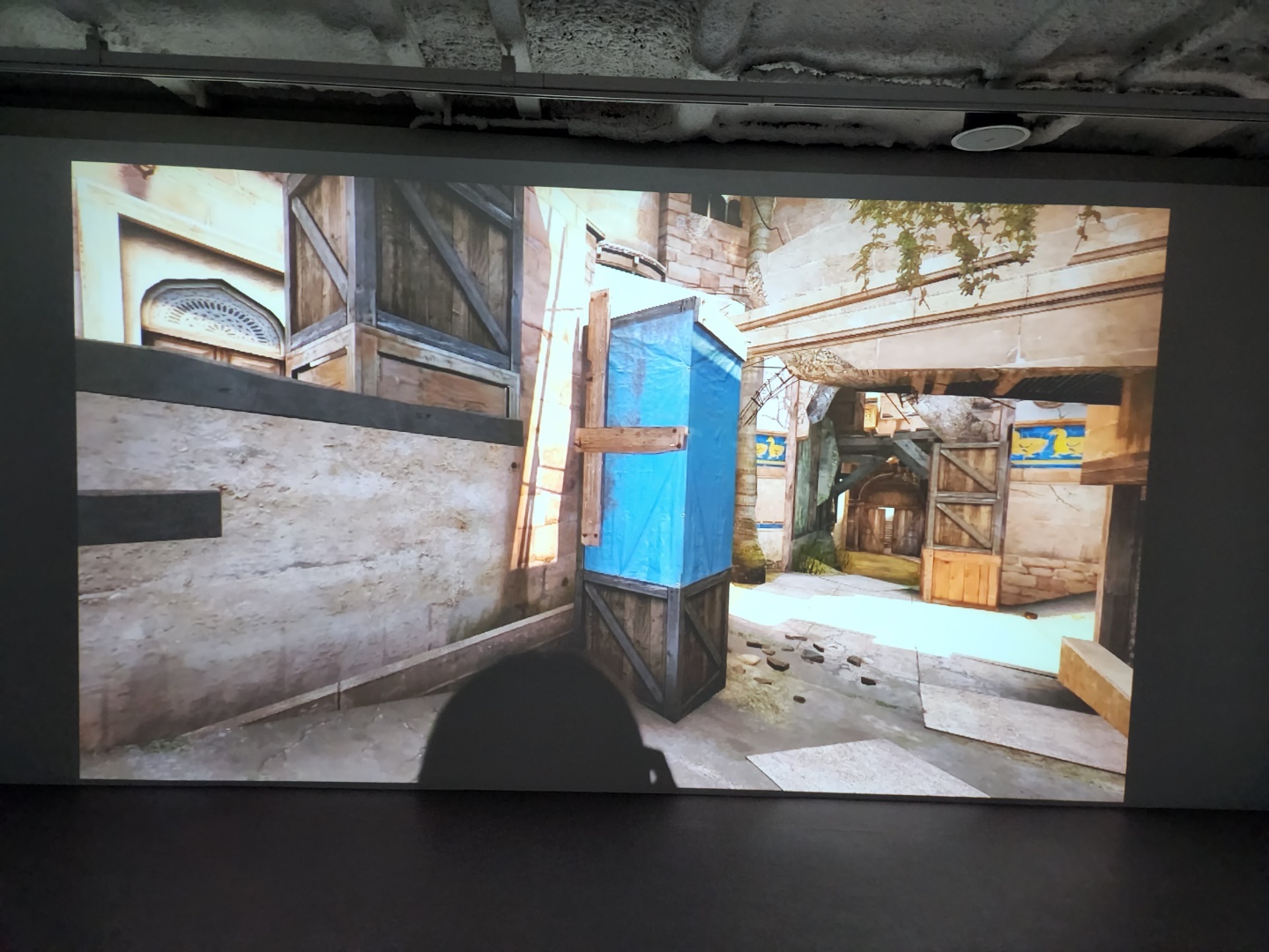 전시회 2관 나가는 길에도 게임 비디오 프로젝션을 감상하실 수 있습니다.