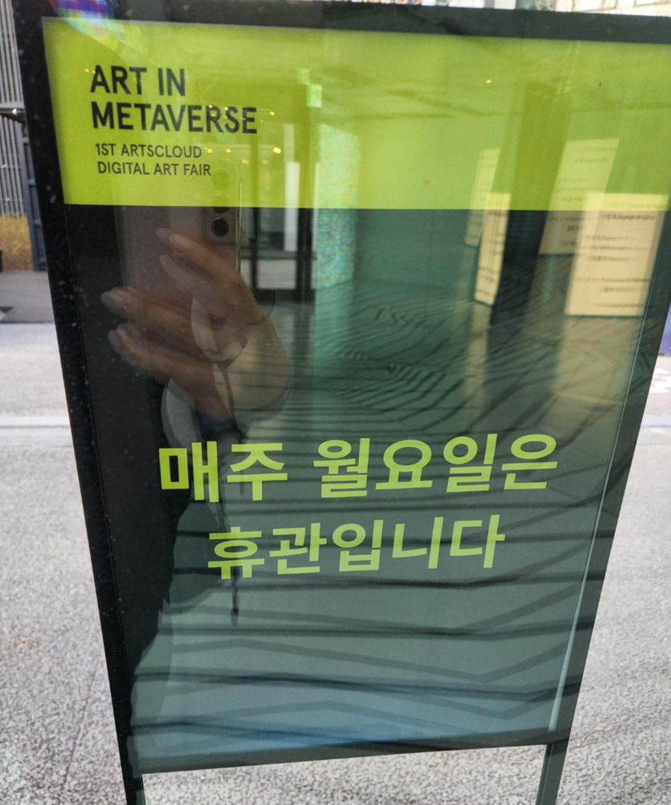 NFT 관련 책을 읽고 아트 인 메타버스 전시티켓을 일찍이 사두었습니다. 그러고는 전시정보를 확인 못하고 월요일날 방문했었는데, 헛탕쳤습니다.월요일 휴관입니다.
