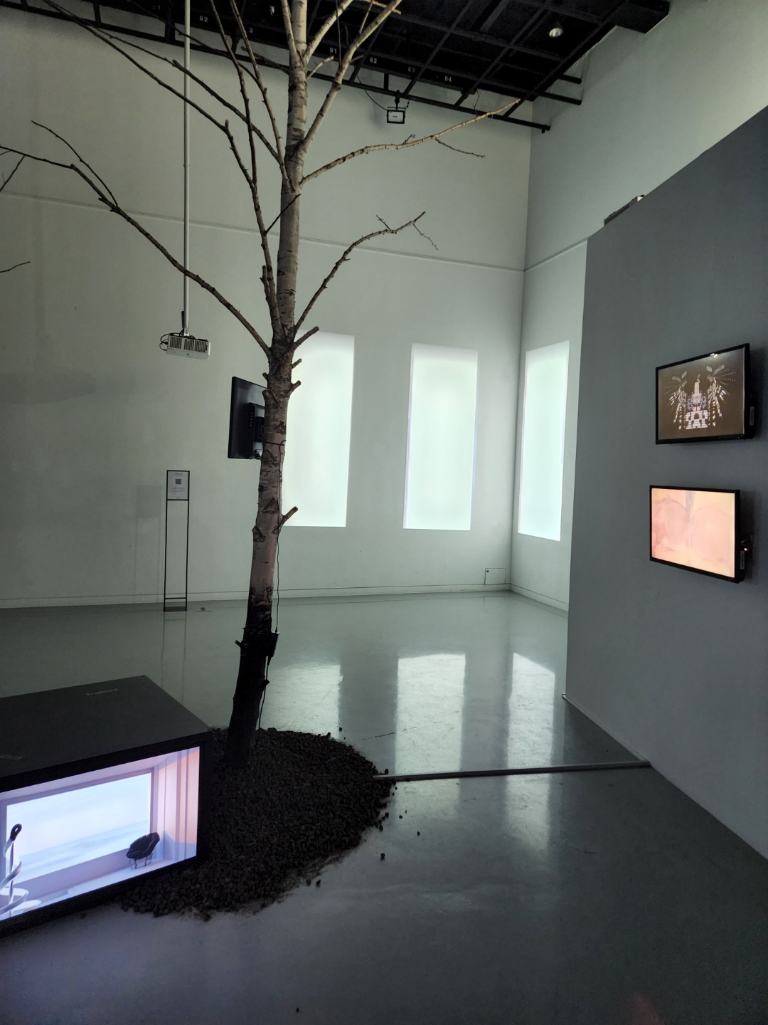 전시장은 곳곳에 설치된 다양한 크기와 종류의 모니터를 통해 작품을 감상할 수 있었습니다.