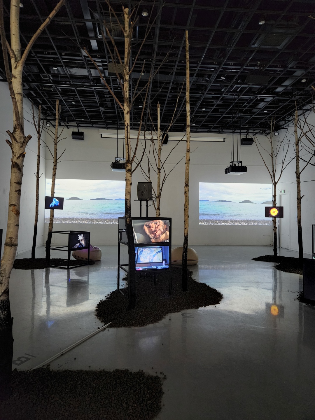 영상들이 주를 이루고 있는데, 가장 큰 모니터를 앉아서 구경할 수 있었습니다.