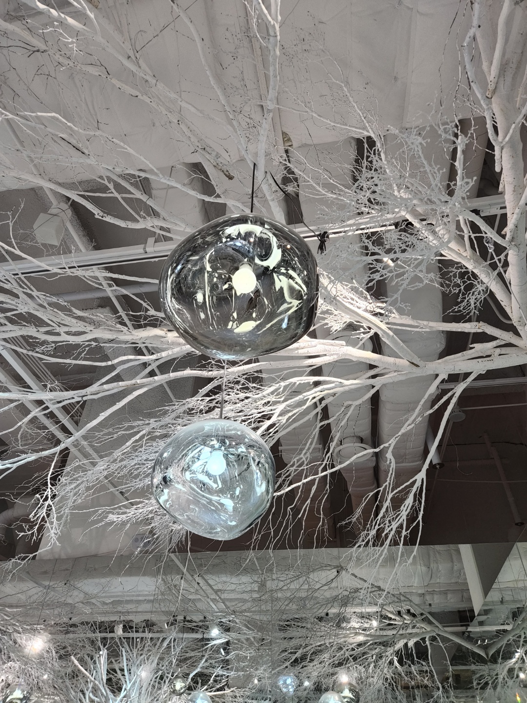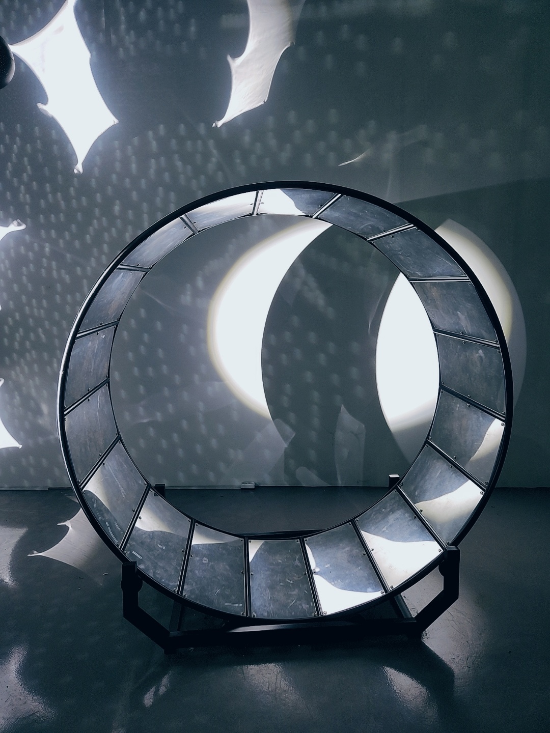 가운데에 있는 사각형 하얀 나뭇가지를 중심으로 사방에 거울이 있습니다.